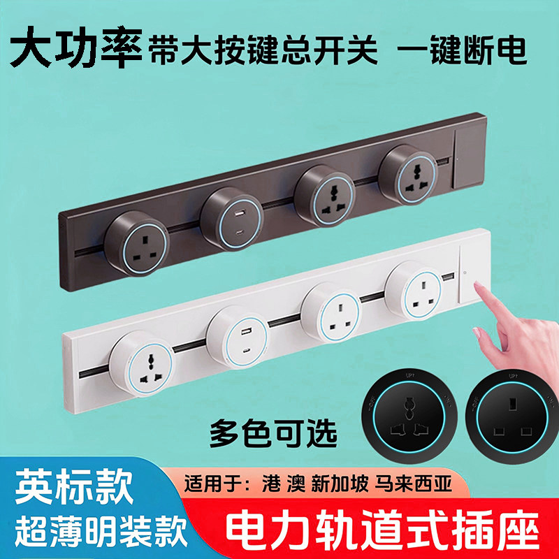 港澳版明装轨道插座13A英标英式可移动滑轨万能电制插排电力导轨