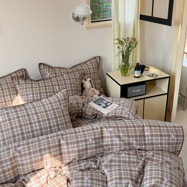 2025春夏新款全棉纯棉双层纱贝壳边四件套-格子系列