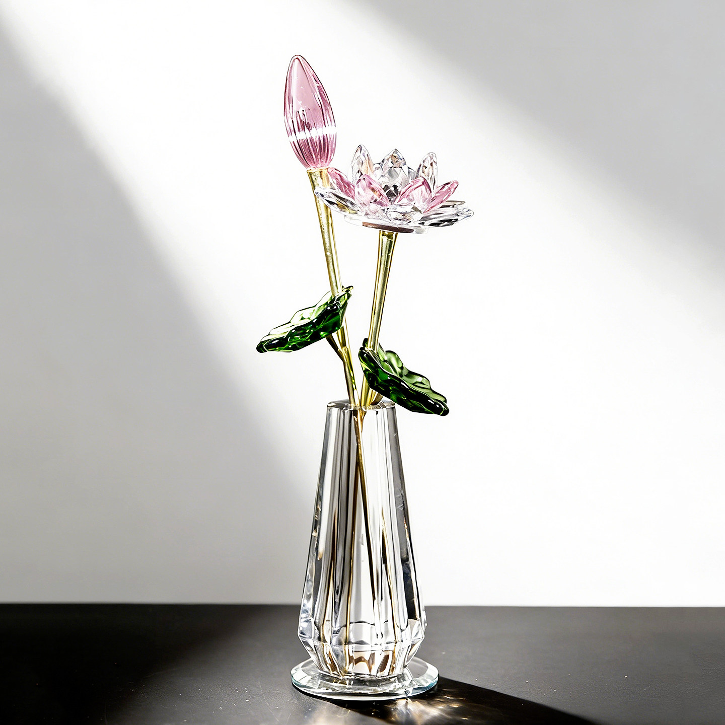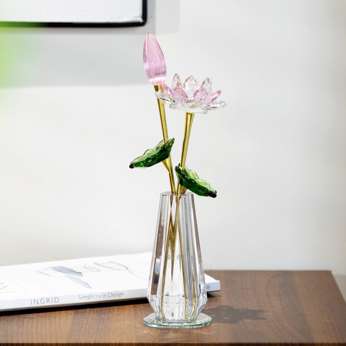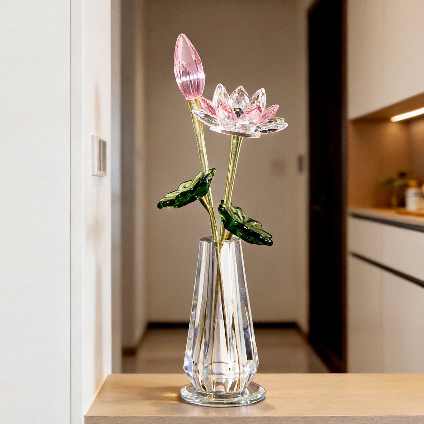 柏梵轻奢水晶莲花装饰摆件客厅玄关高级感家居饰品摆设乔迁礼物