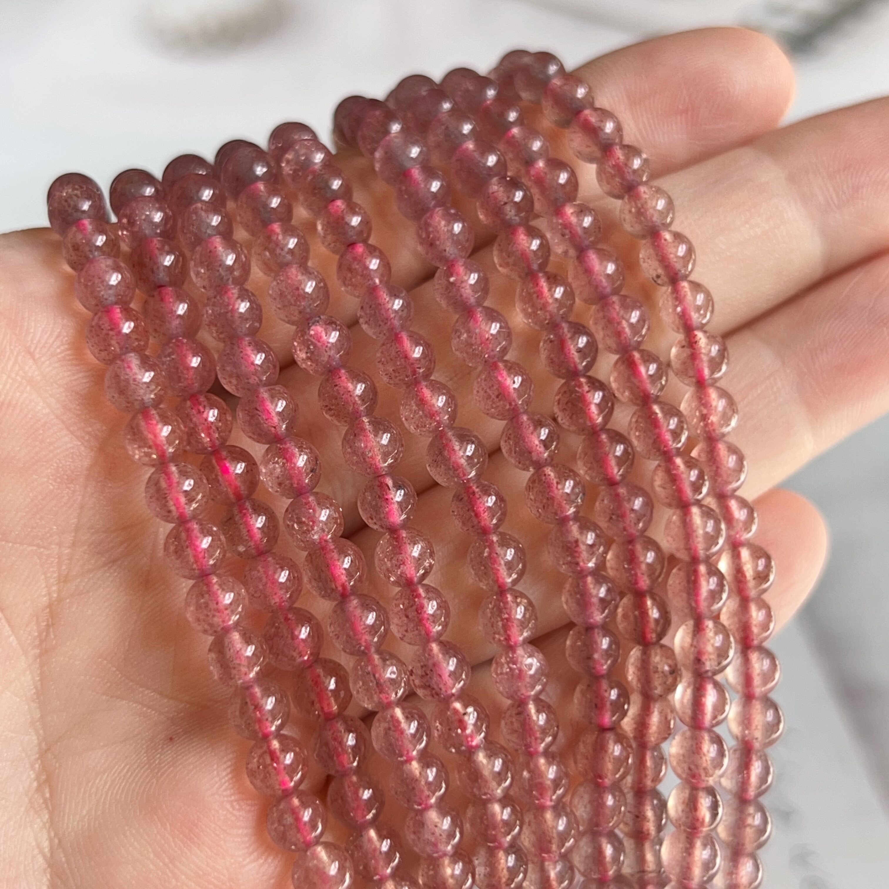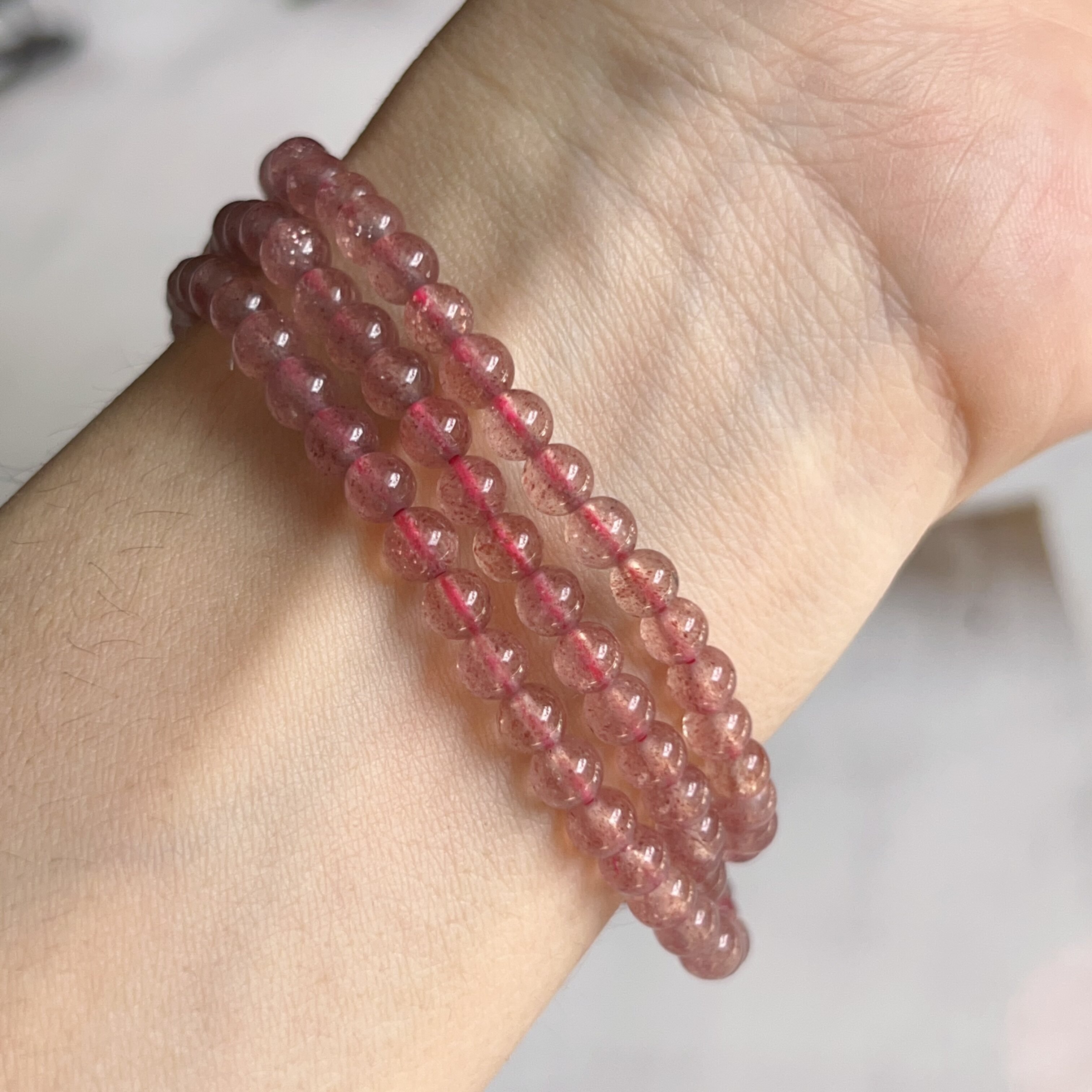 3圈草莓晶多圈手链鸽血红草莓晶女款手串diy手串桃花白水体草莓晶