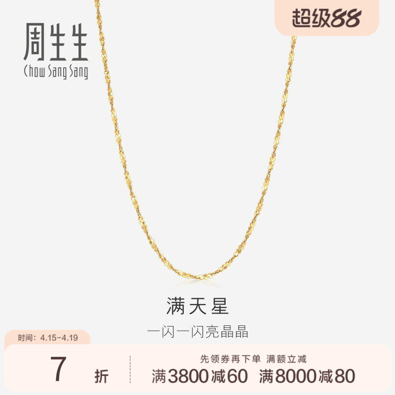 PROMESSA周生生18K黄色黄金满天星项链百搭素链女款锁骨链03817N