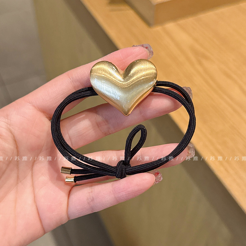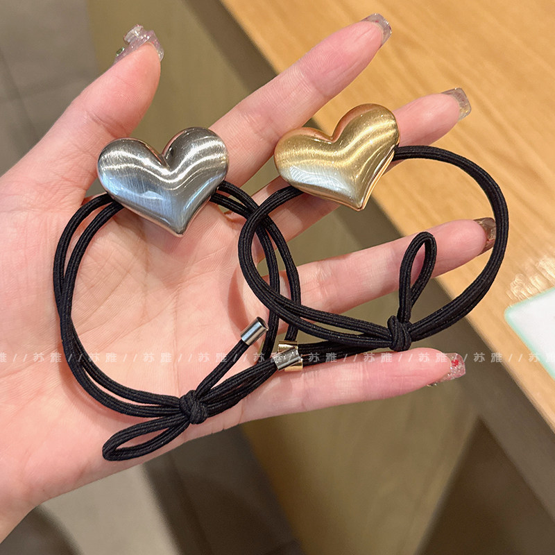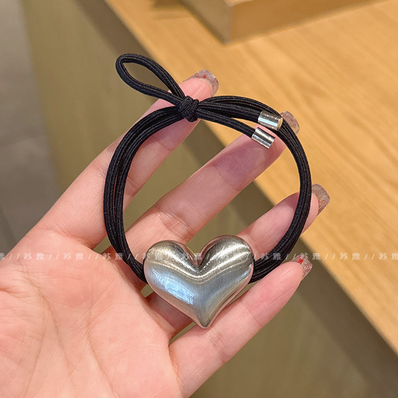 金属感银色爱心打结扎头发头绳女网红发绳不伤发耐用高弹力发圈