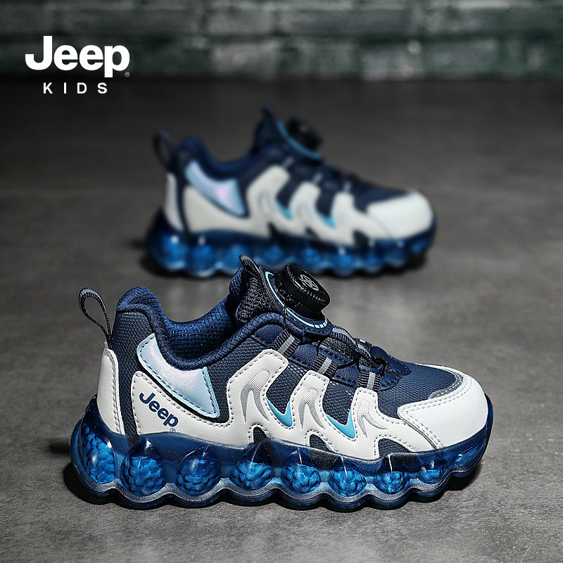 Jeep男童鞋子旋转扣运动鞋2025春季新款网面透气儿童鞋女童轻跑鞋