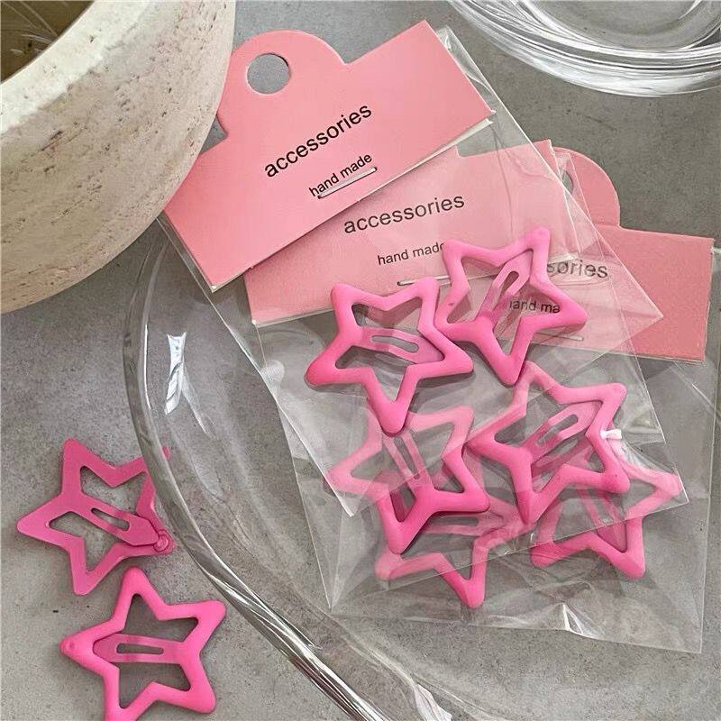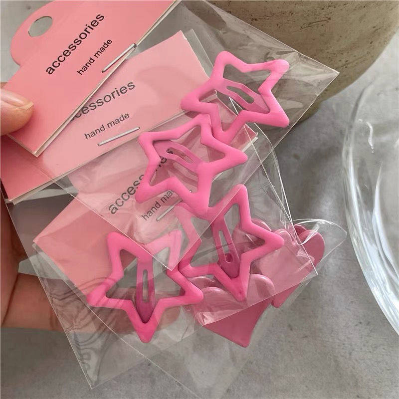 韩国玫红色系少女心新款星星刘海小发夹抓夹可爱五角星BB夹刘海夹