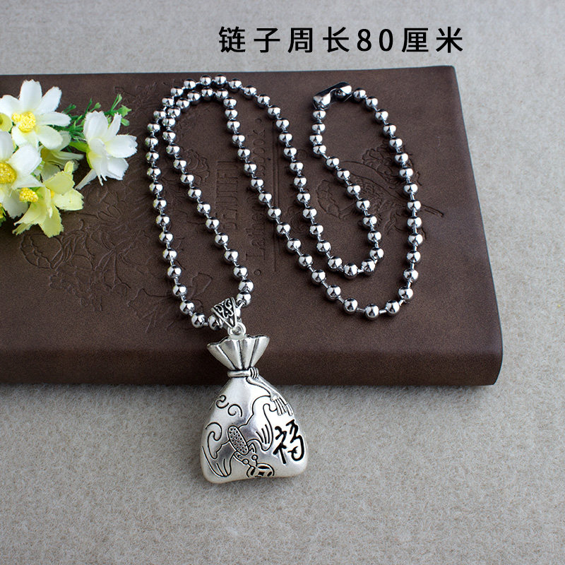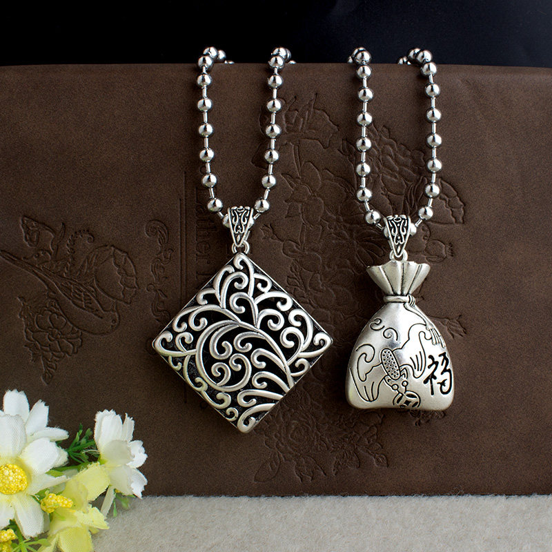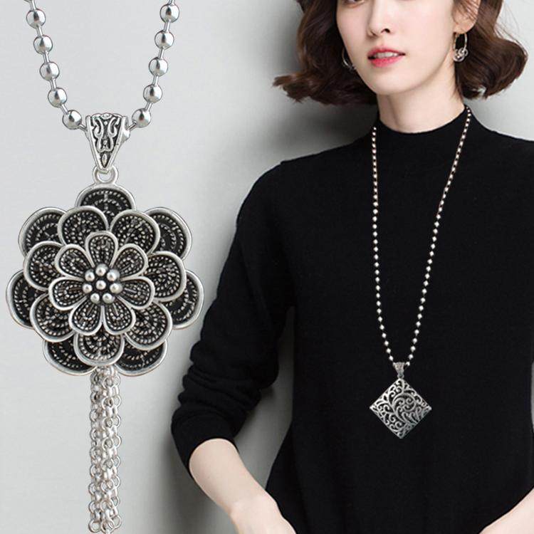 复古时来运转流苏吊坠藏银长款毛衣链挂件民族风四方来财项链饰品