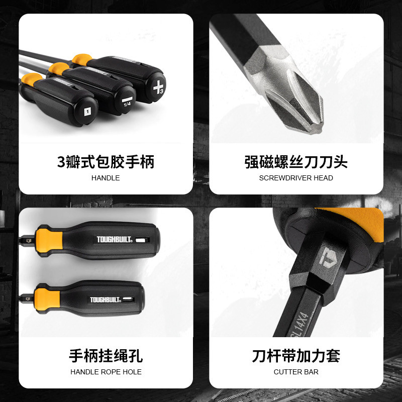 TOUGHBUILT拓必得十字(PH2)高扭矩螺丝刀(起子改锥)TB-H5-PH2x4