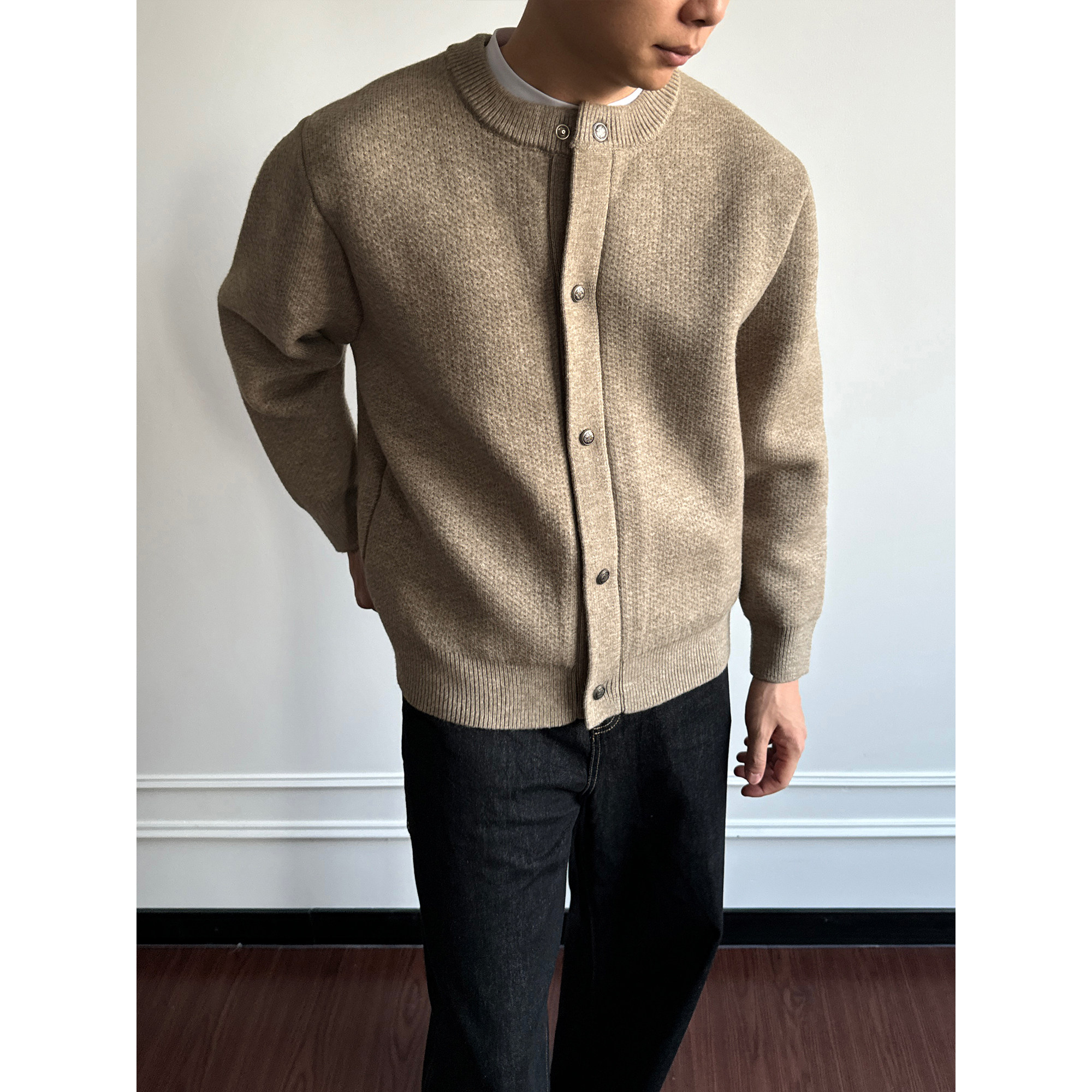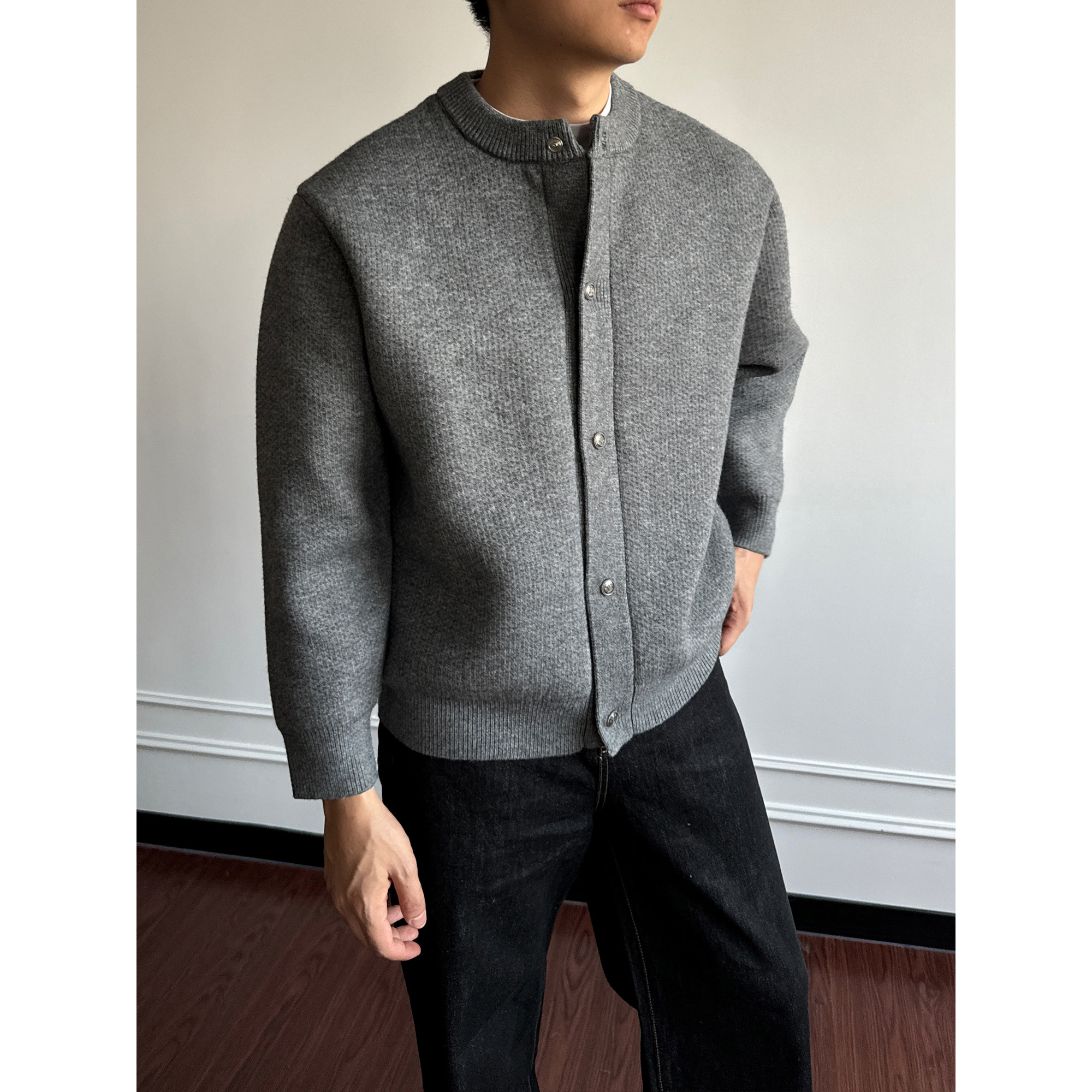 〔TBKL〕星空雾绒纱亨利领针织开衫男秋冬重磅单排扣挺阔加厚毛衣