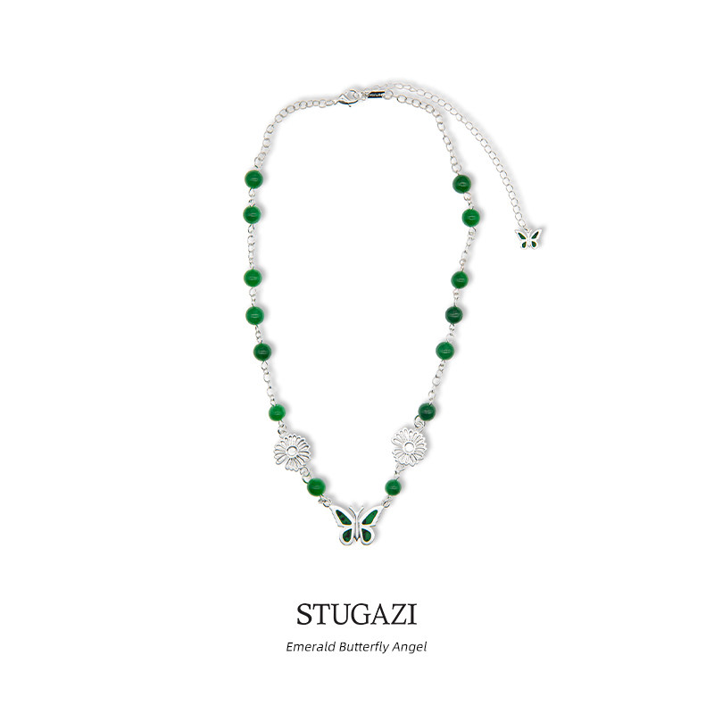 STUGAZIEmerald Butterfly Angel翡翠珍珠蝴蝶项链原创设计款绿色