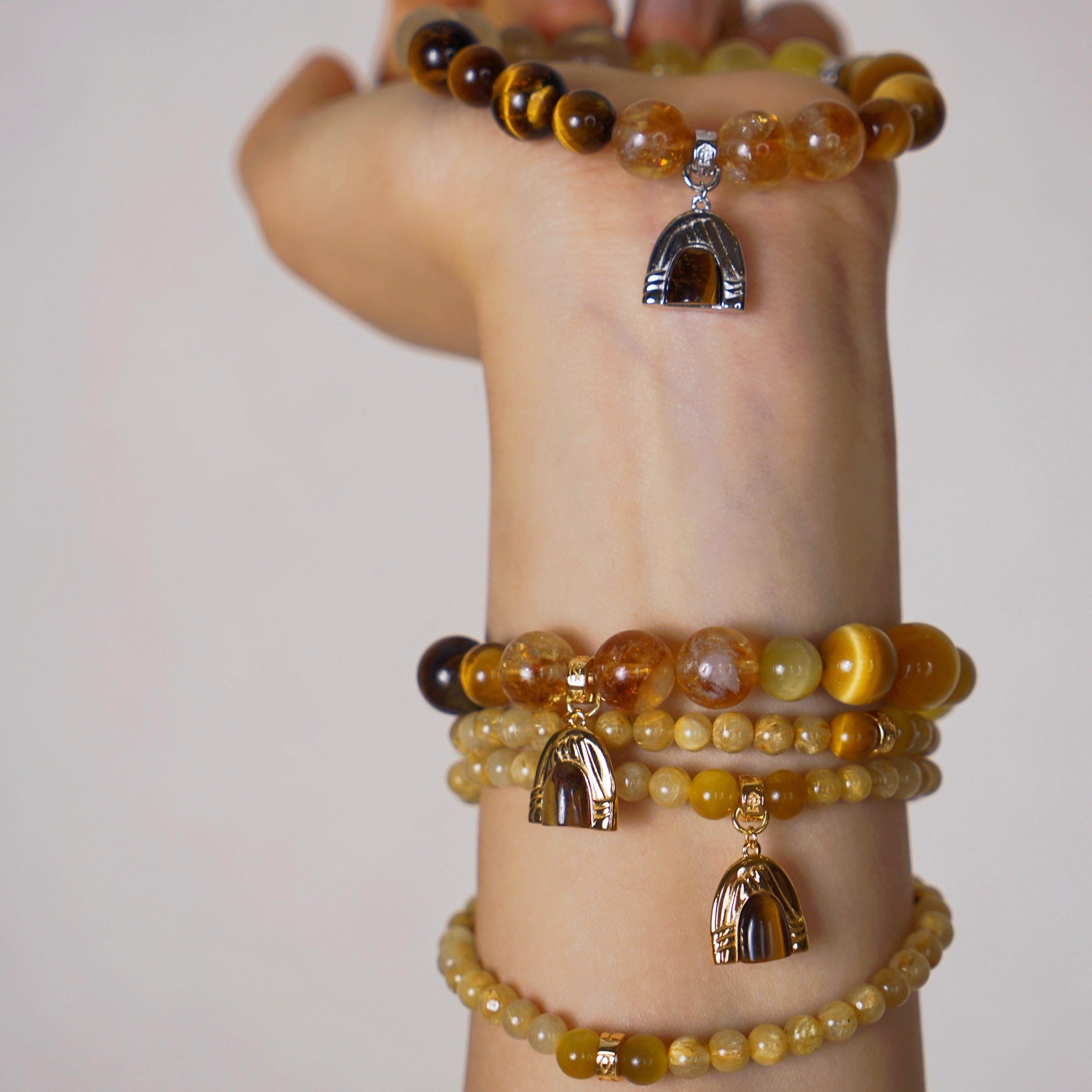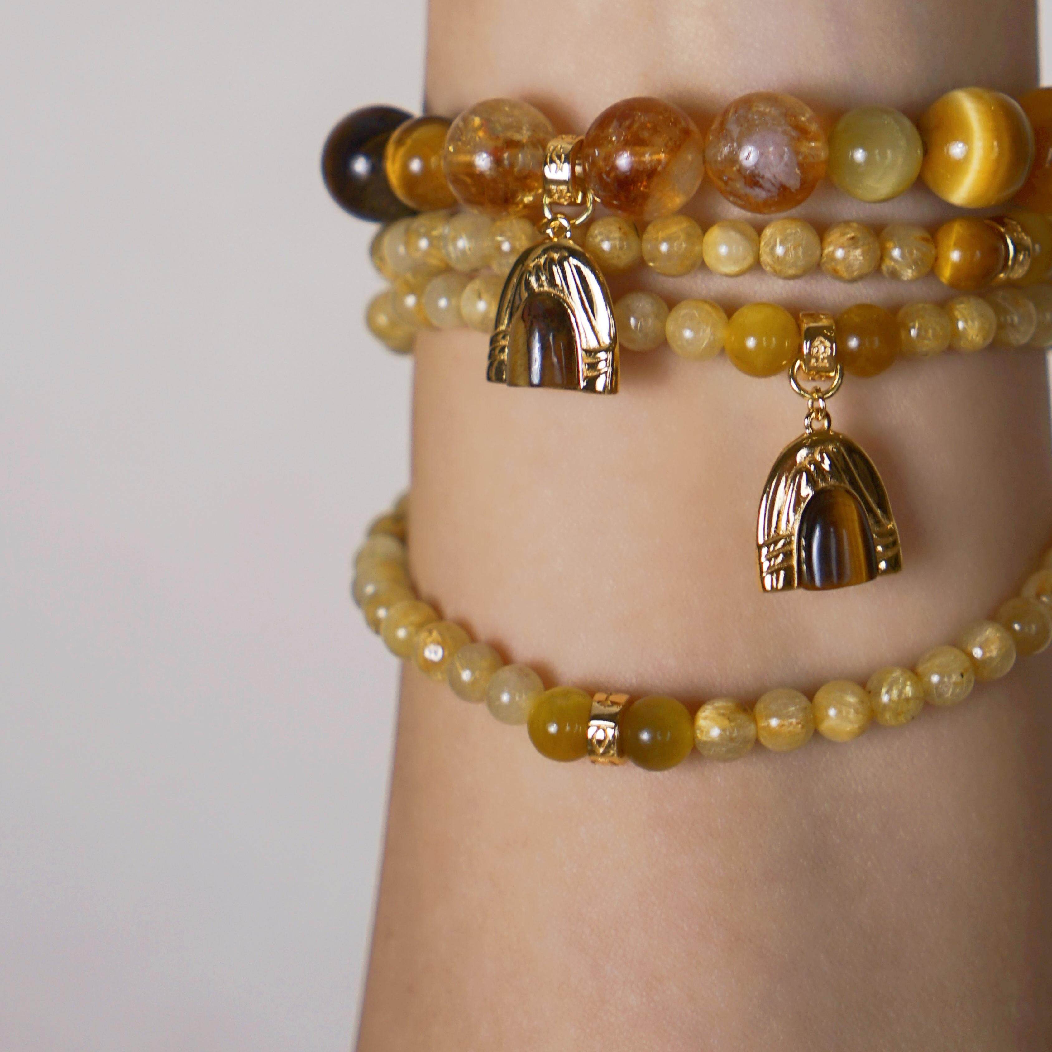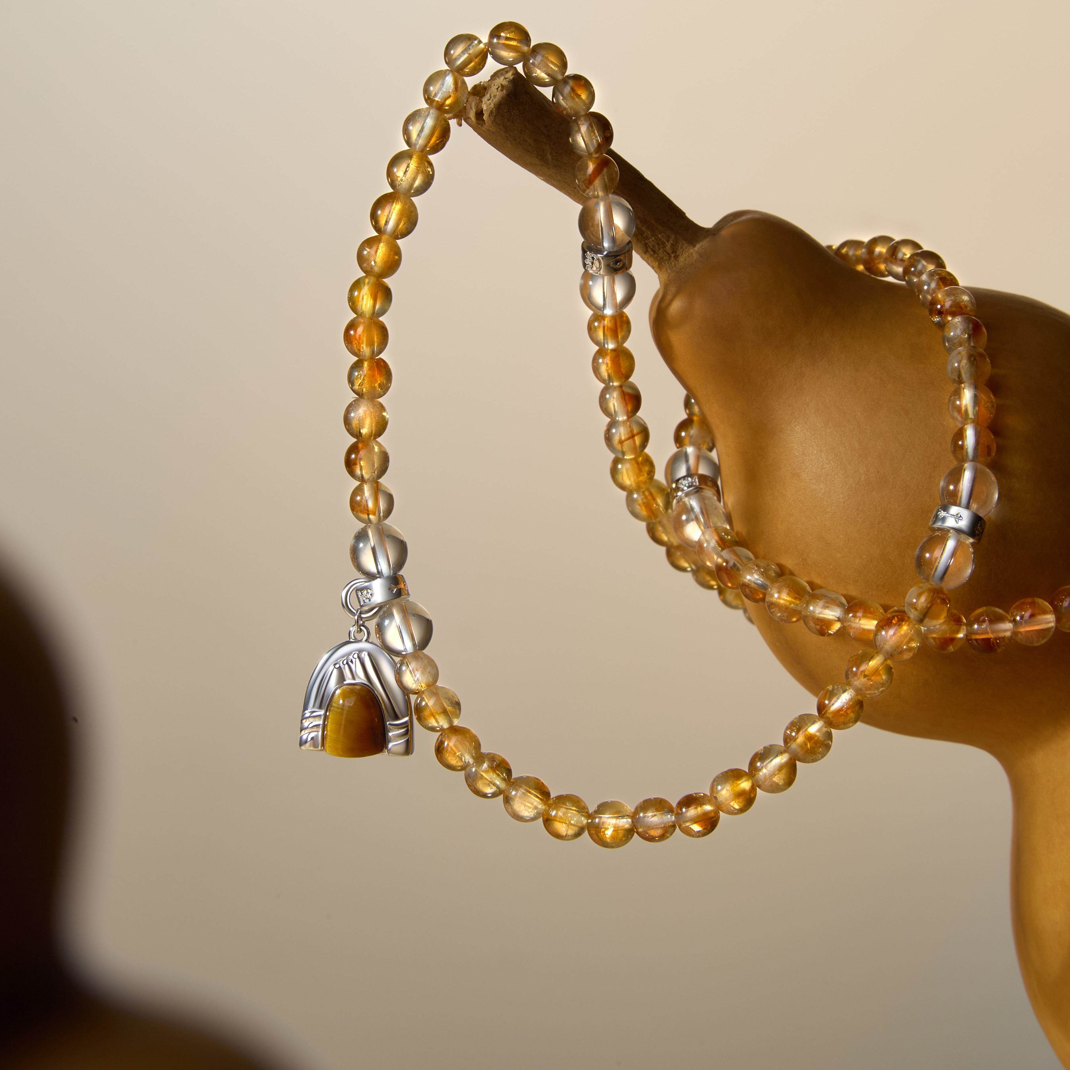 元生五行土 925银镀金/白金吊坠金发晶黄水晶三圈手串&项链 108颗