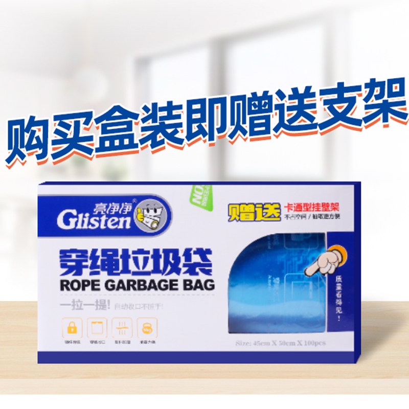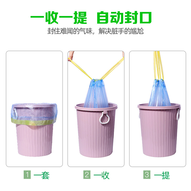 自动收口垃圾袋加厚家用抽绳式手提式中号厨房厨余一次性塑料袋