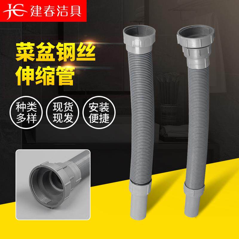 直销新款直供水槽下水管厨房洗菜盆洗碗池排水管双螺口头延长软管