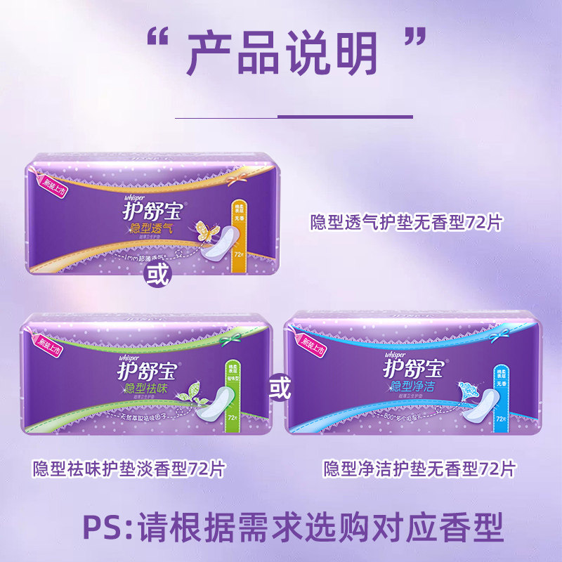 护舒宝隐型祛味护垫72片薄款淡香超薄迷你卫生巾护垫透气