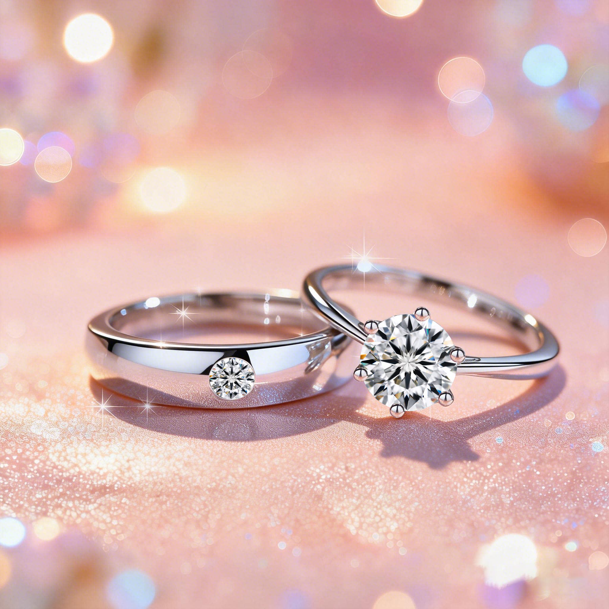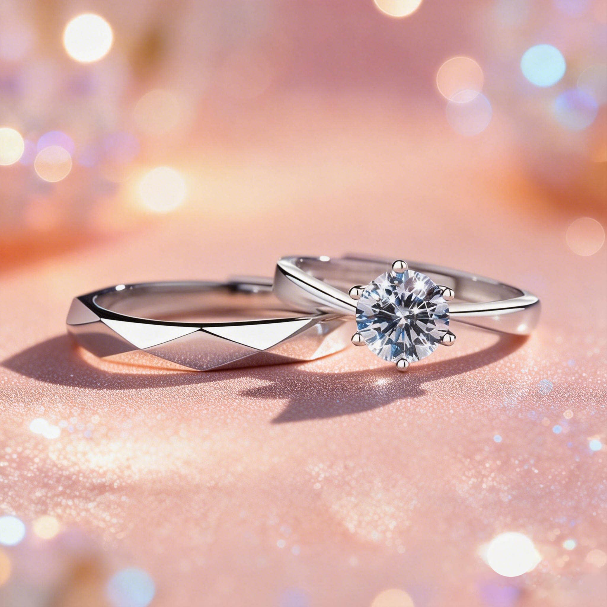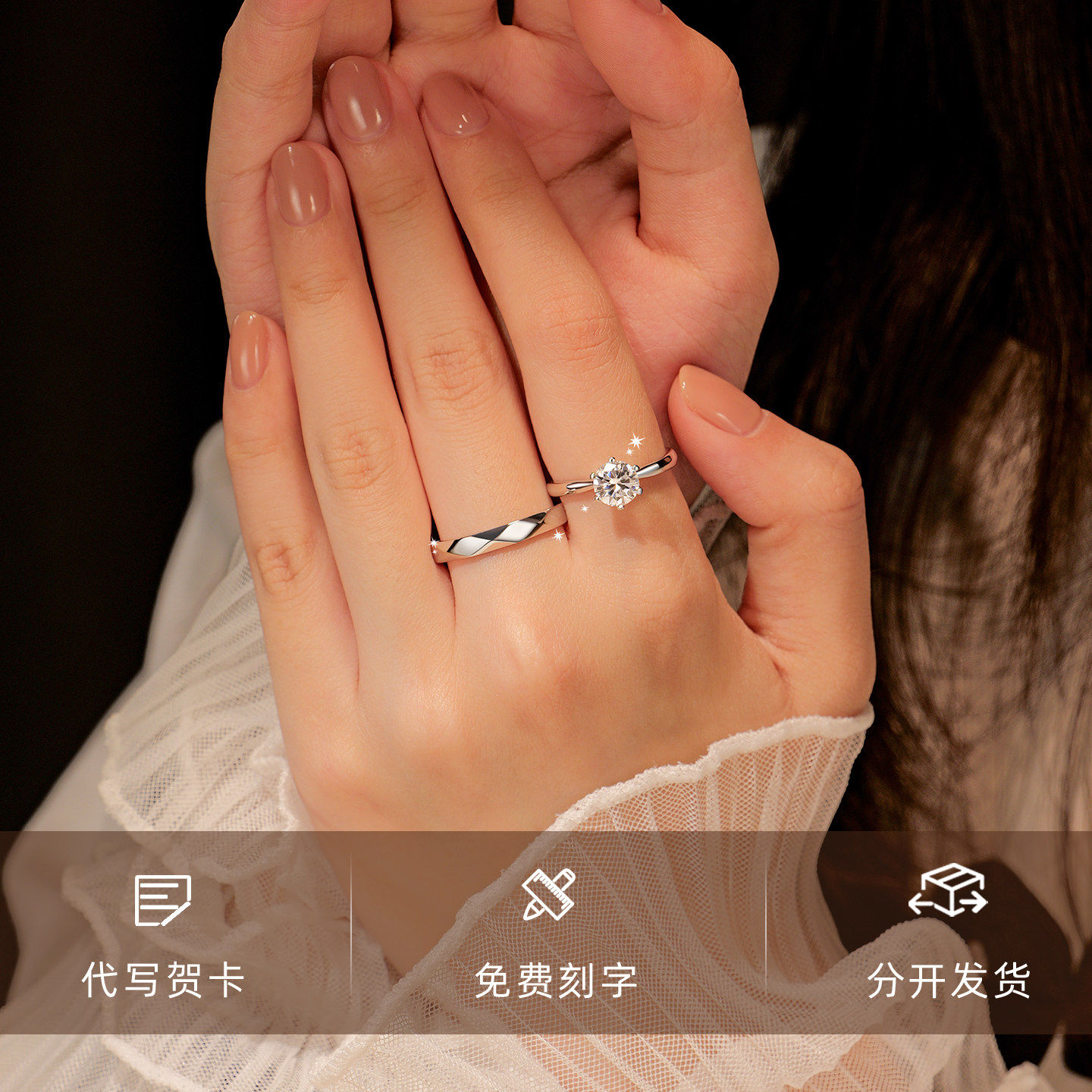 纯银情侣对戒莫桑石钻戒男女一对1克拉戒指求结婚戒指送女友礼物