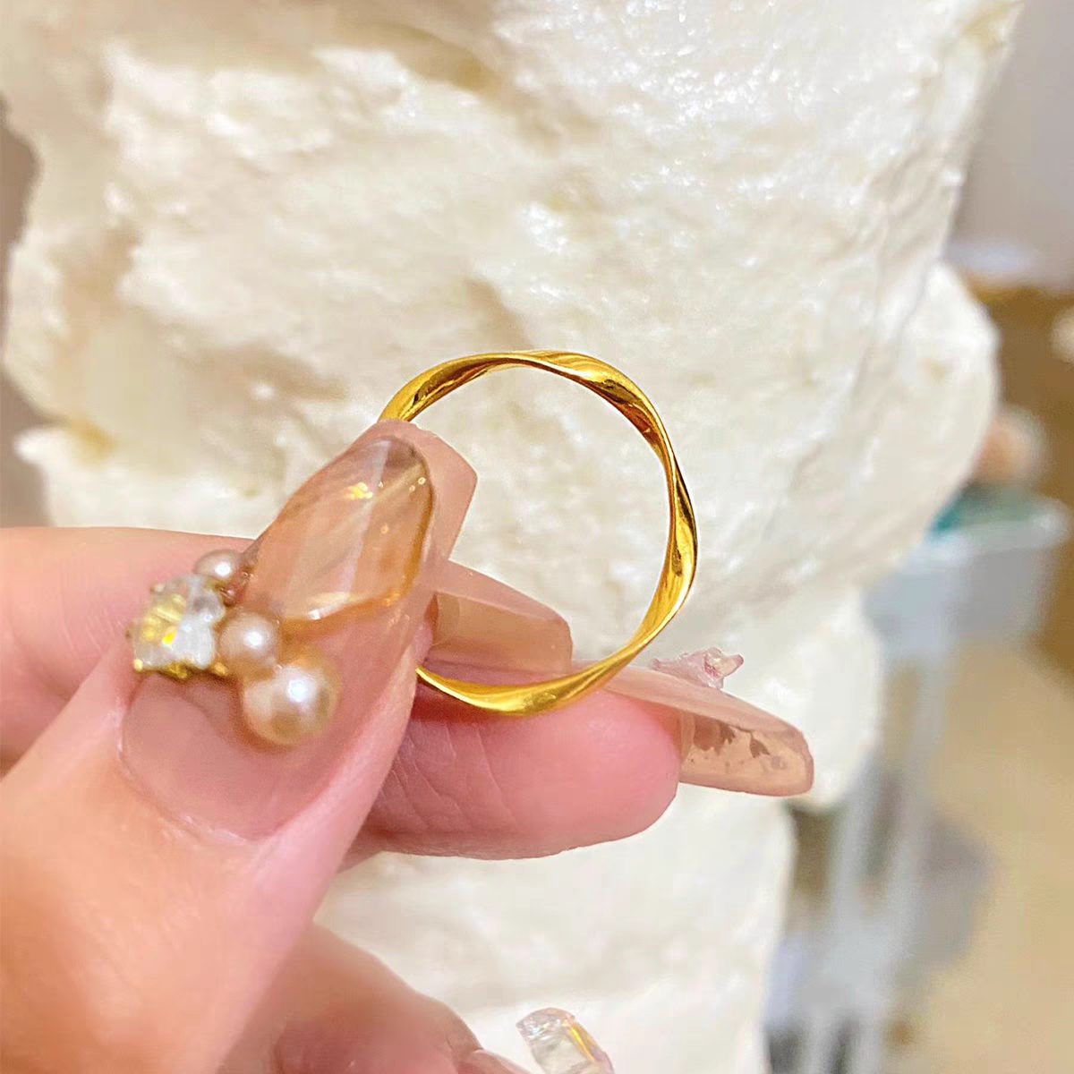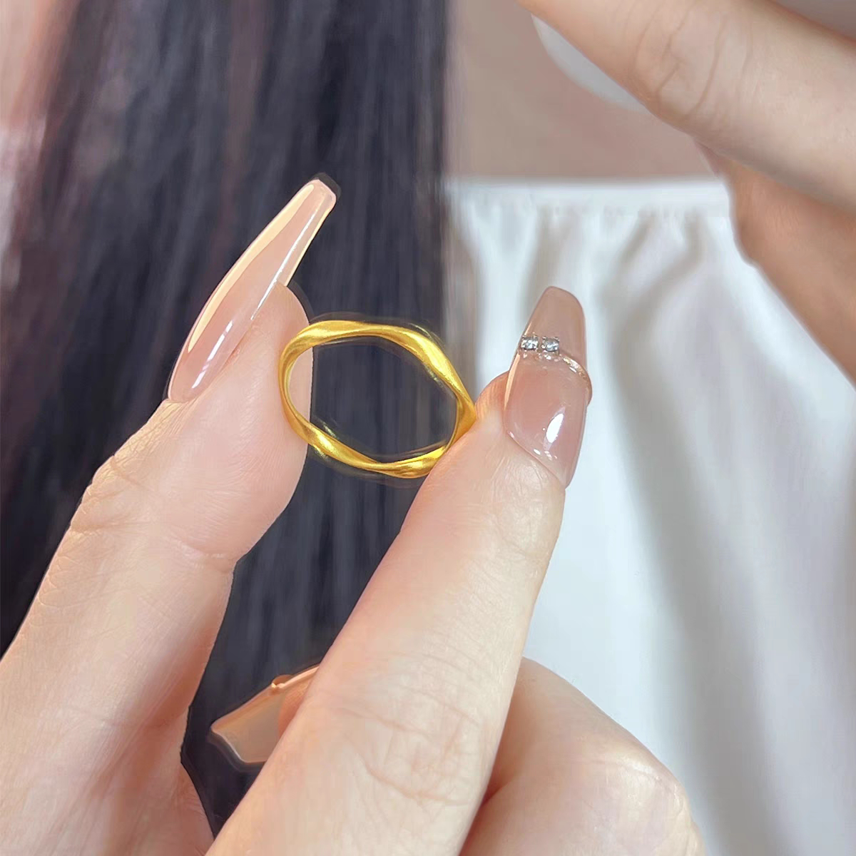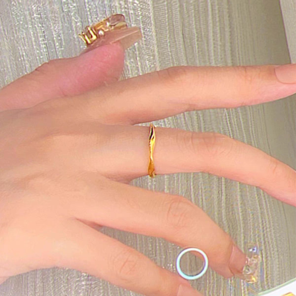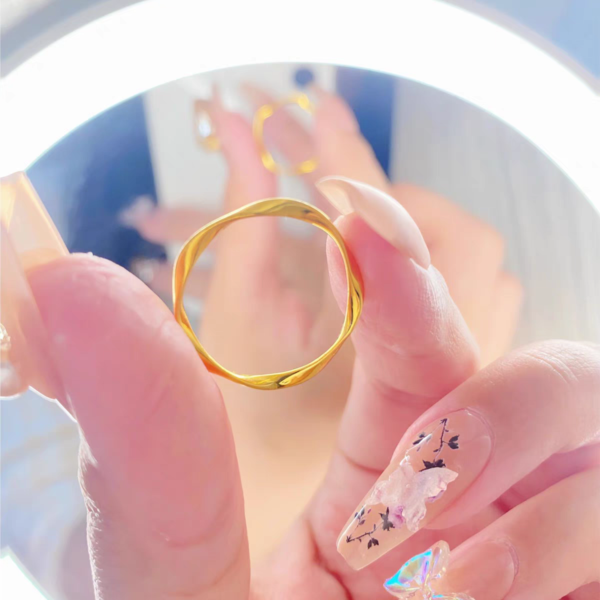 沙金莫比乌斯环戒指女素圈指环小众设计简约时尚光面