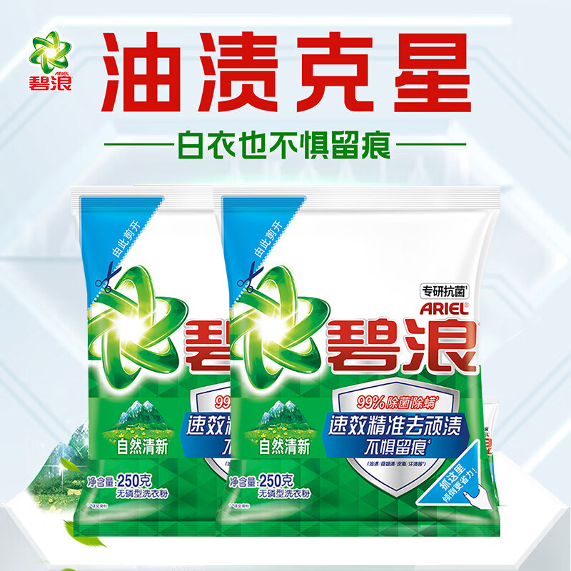 碧浪洗衣粉250g*2袋自然清新去渍护衣洁净无磷机洗手洗家庭装正品