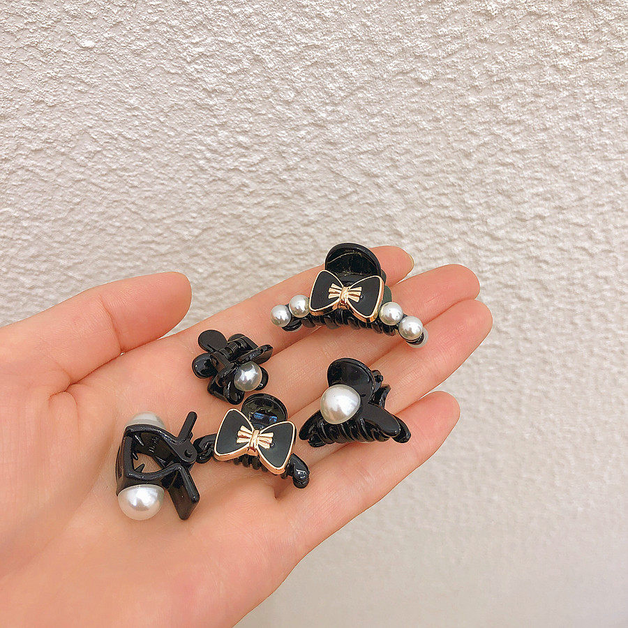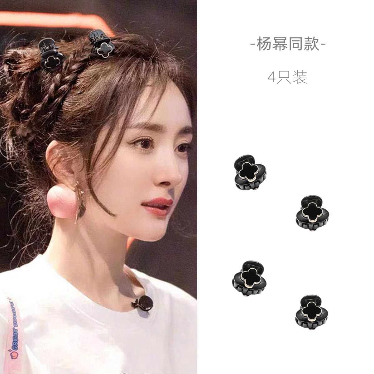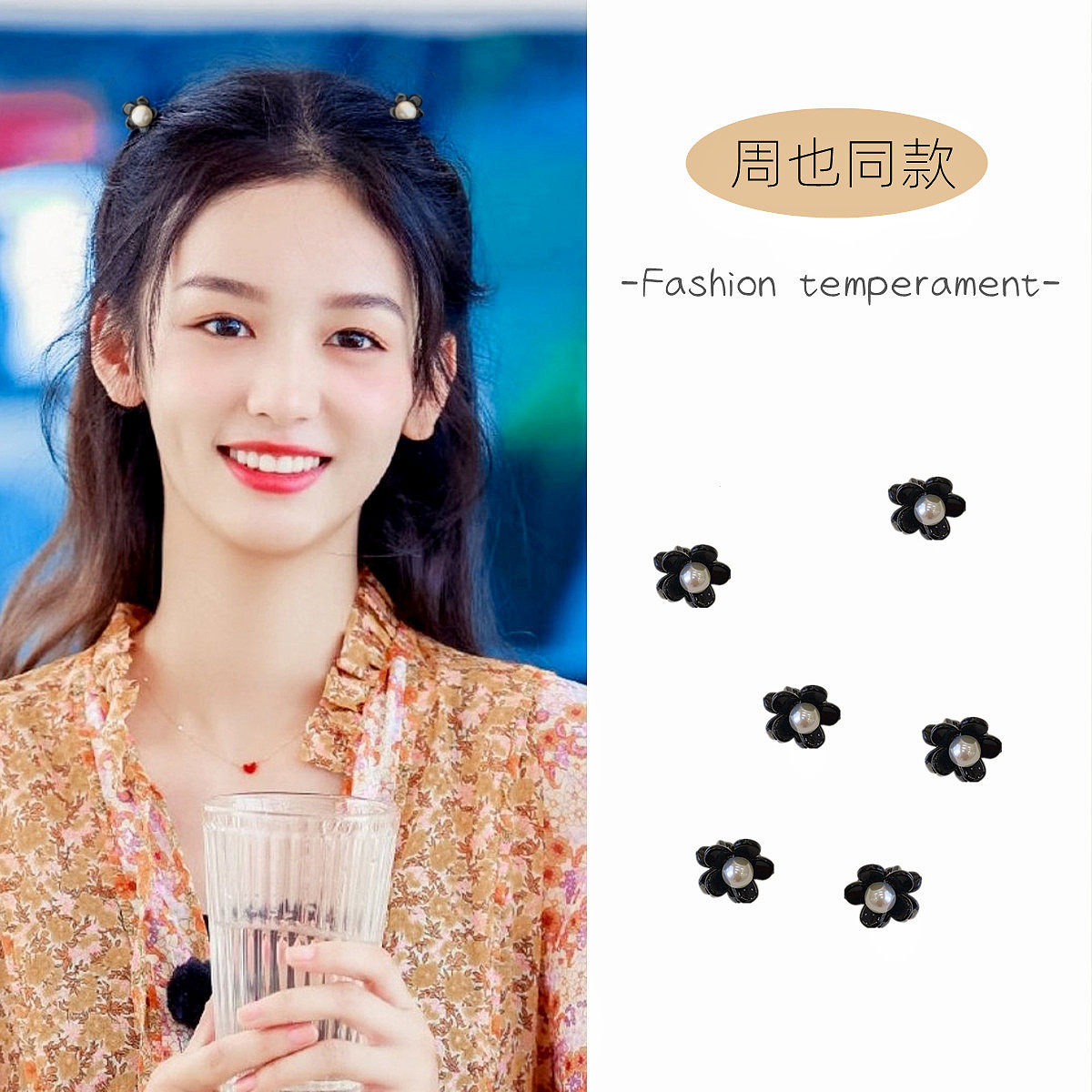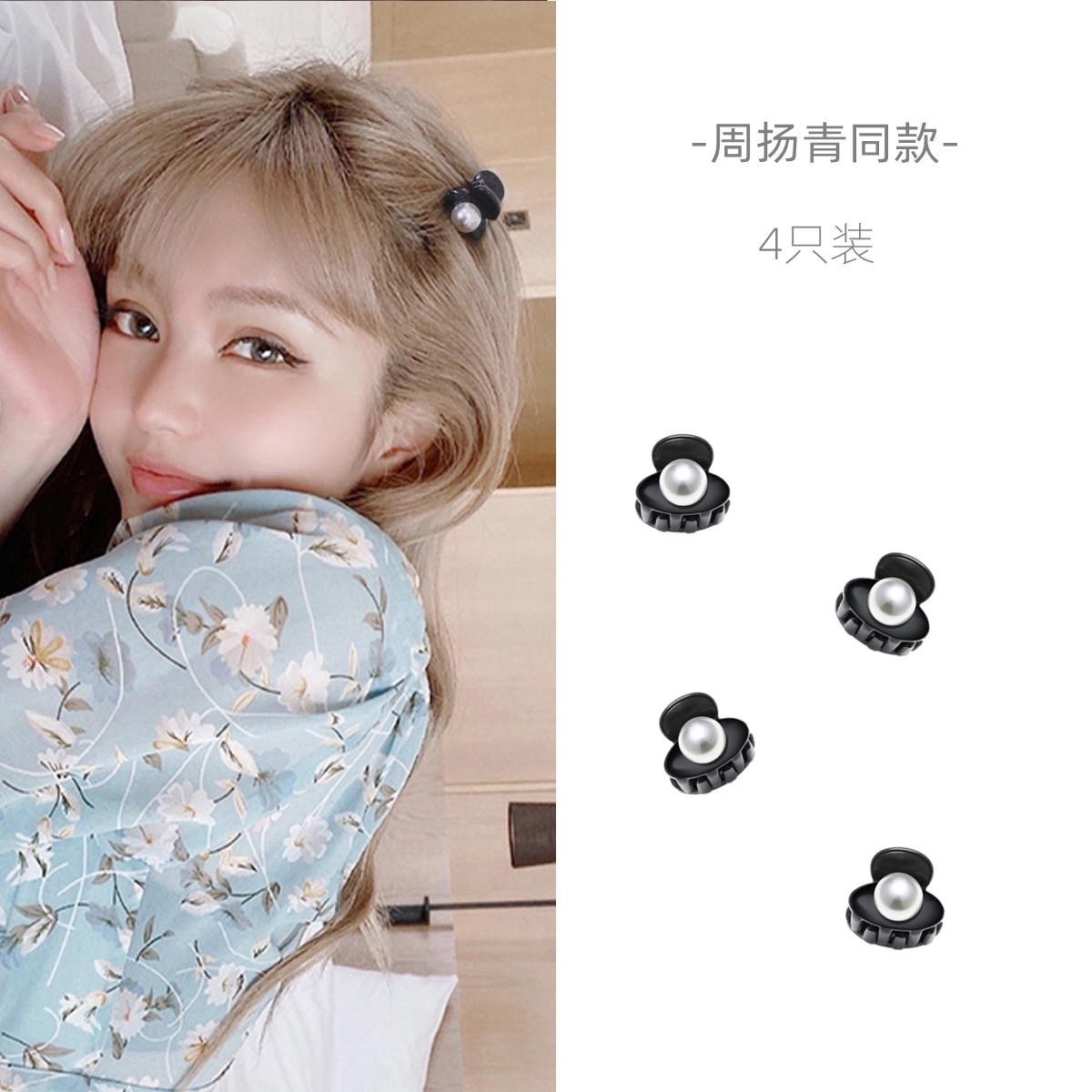 非常小发夹 4只装公主头抓夹头顶黑色复古珍珠小夹子刘海发饰品女