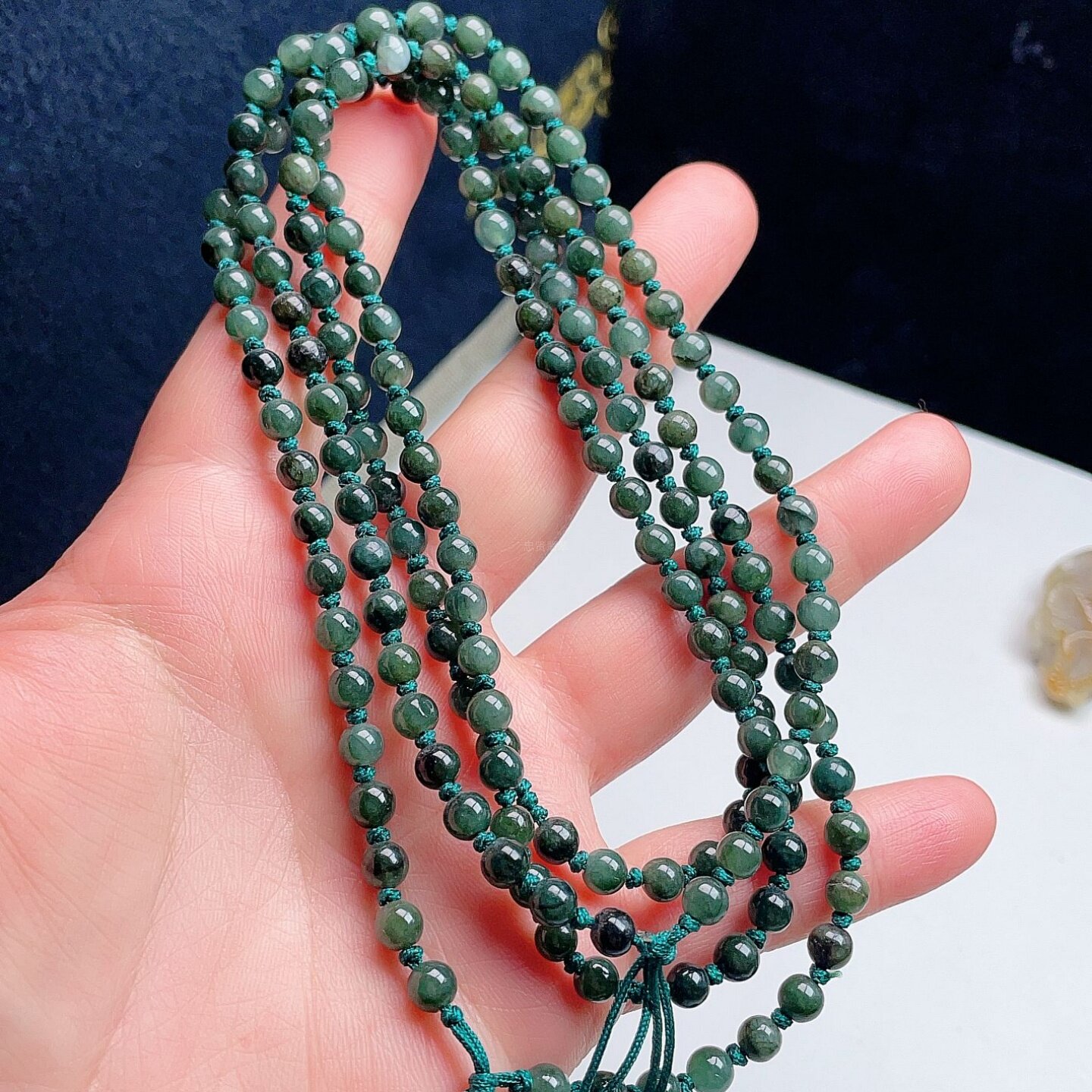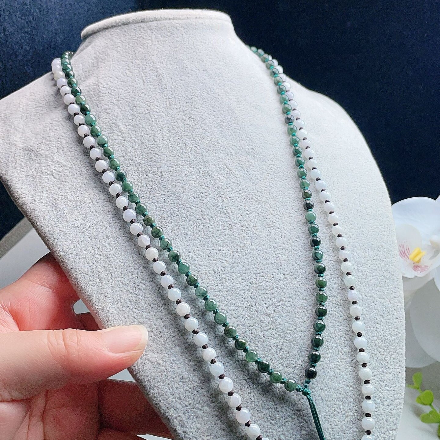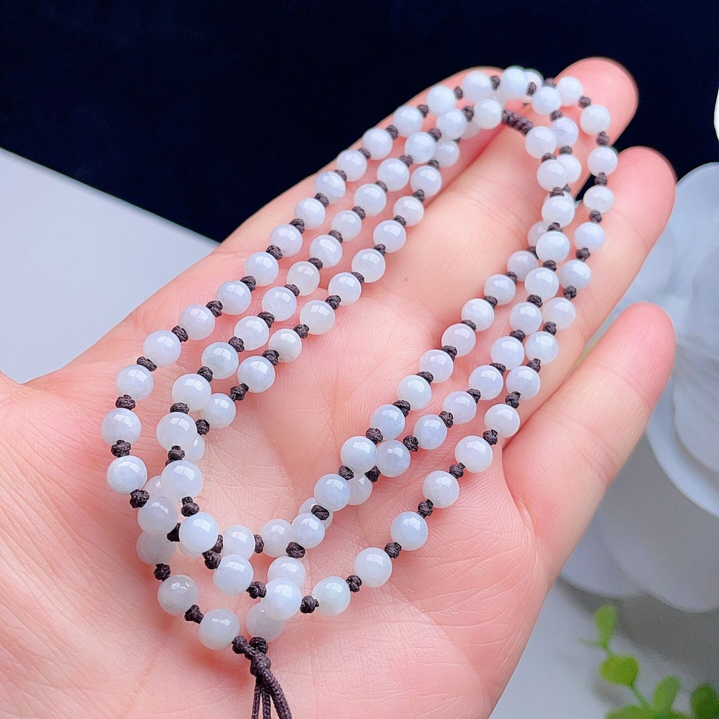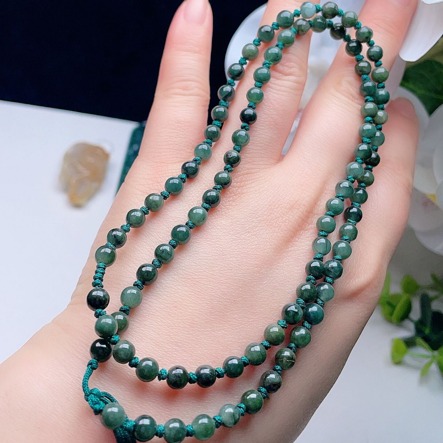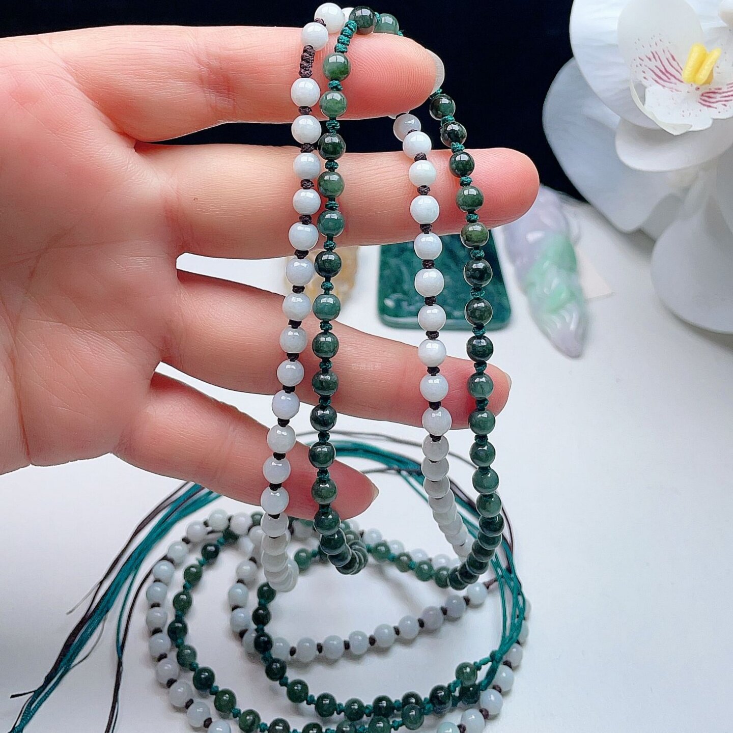 A货翡翠小圆珠编织吊坠挂链乳白油青天然老坑编织圆珠项链意境