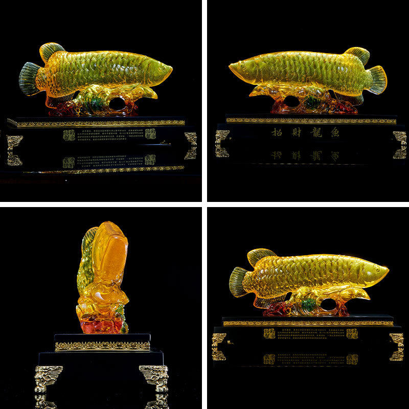 创意树脂工艺品家居客厅装饰品金龙鱼琉璃摆件办公室开业厂家批发