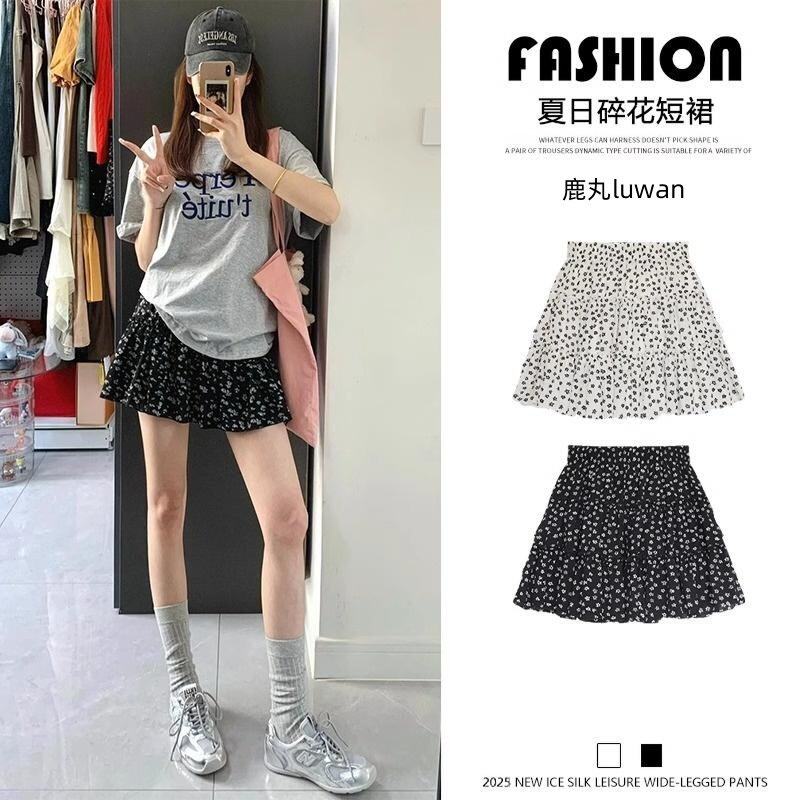 波点碎花短裙女夏季2025新款防走光高腰a字半身裙黑色蓬蓬蛋糕裙