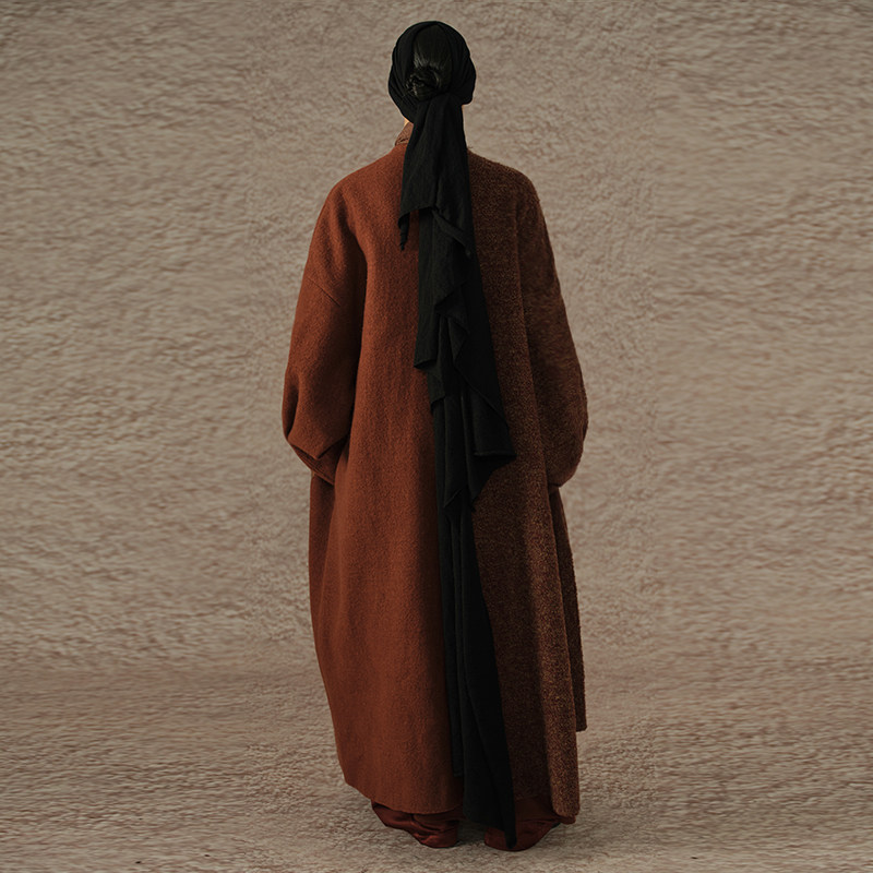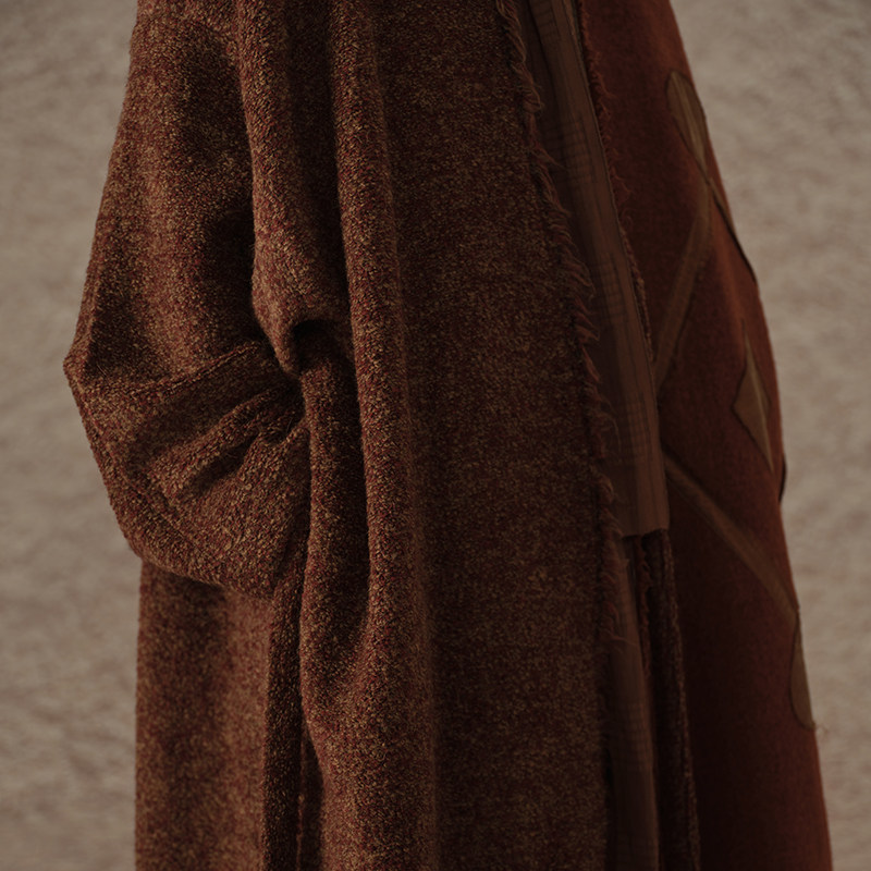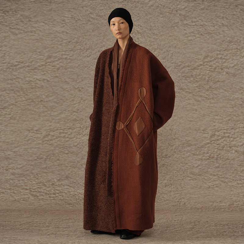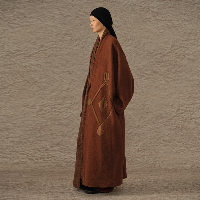 【MORIN KHUUR 牧仁】手工贴布绣羊驼毛拼色大衣