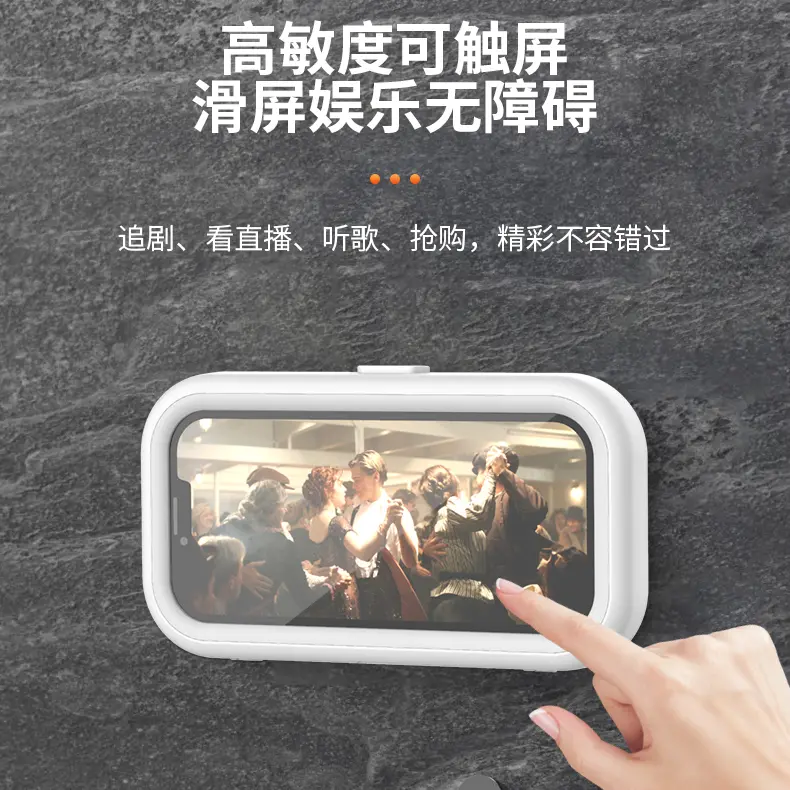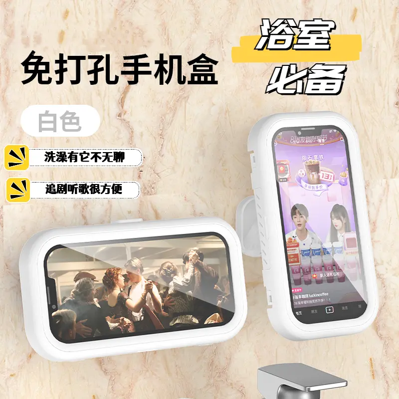 浴室防水防雾手机盒免打孔壁挂手机支架追剧神器可旋转厨房防水盒