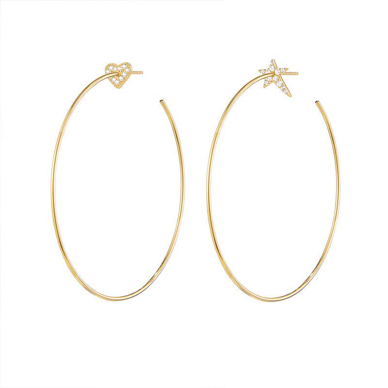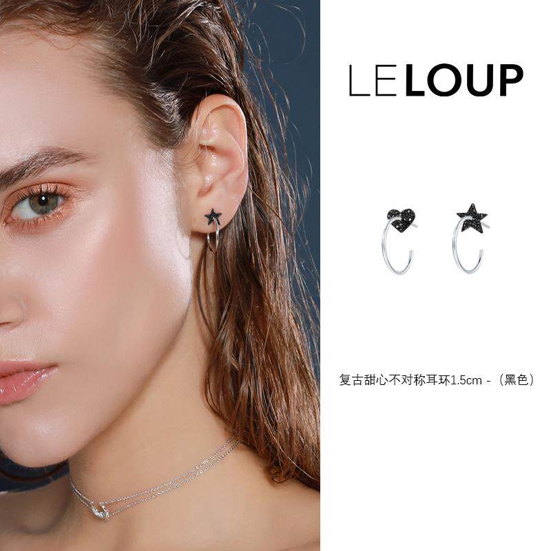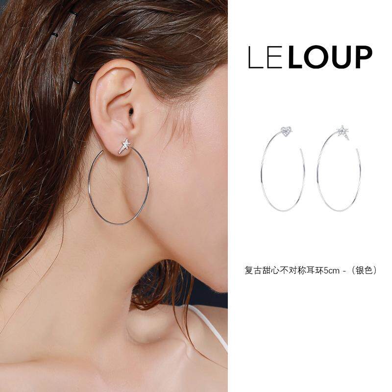 LE LOUP复古甜心不对称耳环欧美风镶钻爱心星星超大极细圈圈耳饰