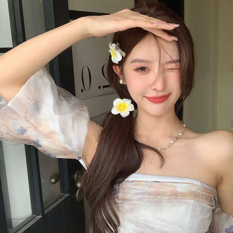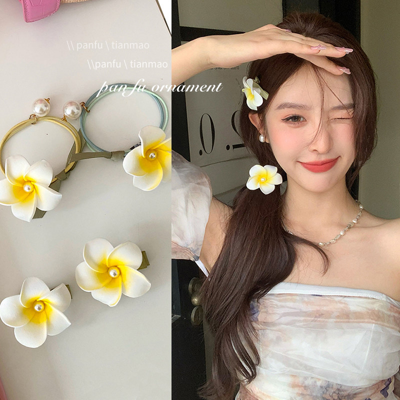 点亮夏天 好看鸡蛋花 2025新款花朵发夹头绳双马尾头绳皮筋头饰女