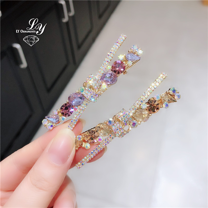 韩国精致闪亮水钻发夹侧边夹气质女生镶钻刘海夹子后脑勺发卡发饰