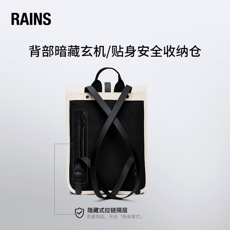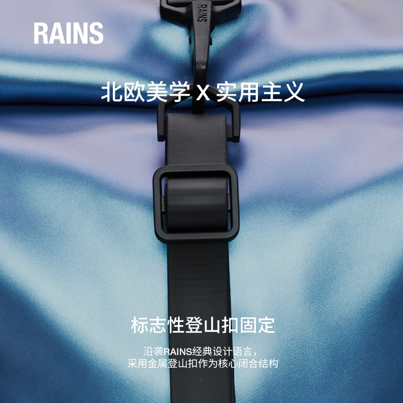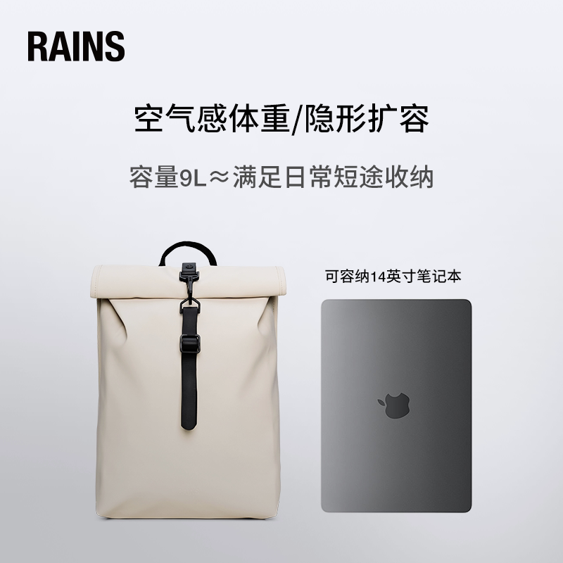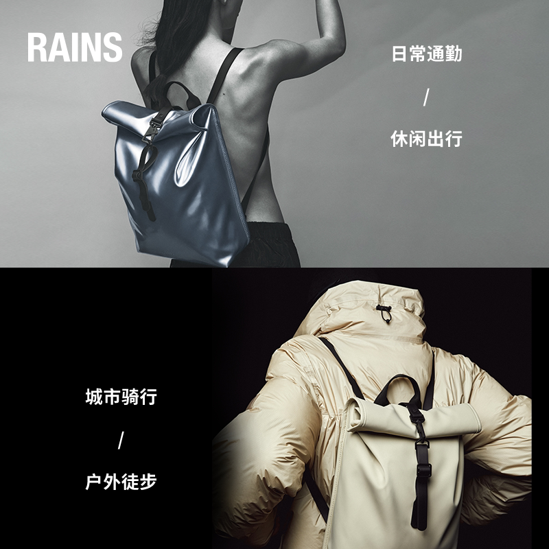 Rains防水面料卷顶双肩包电脑书包户外通勤旅行男女Rolltop/13330