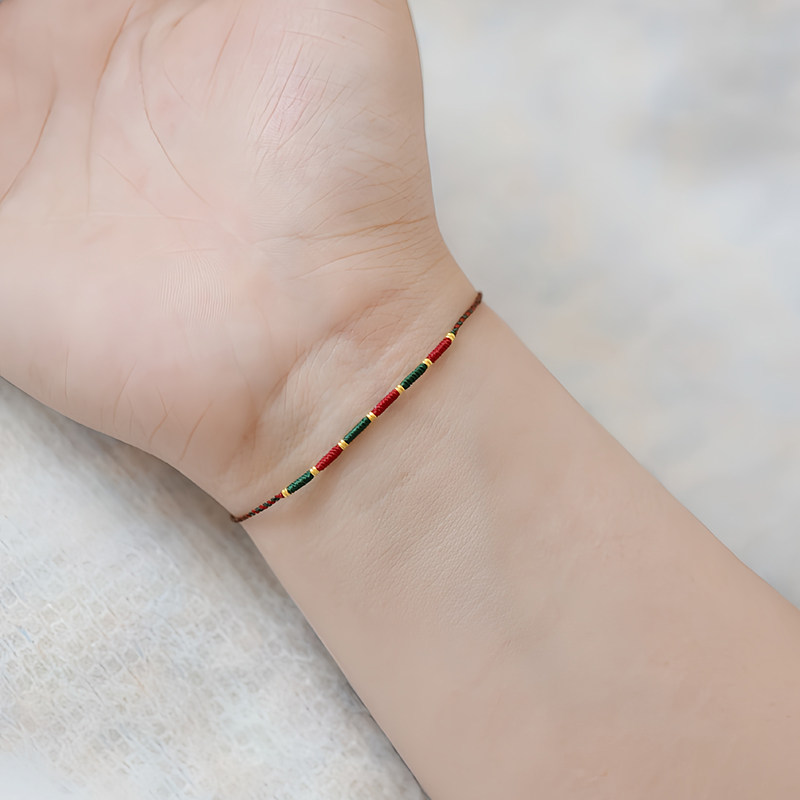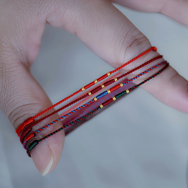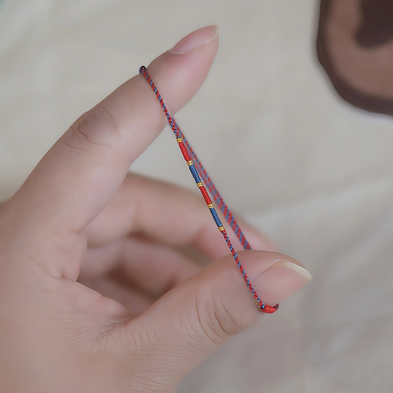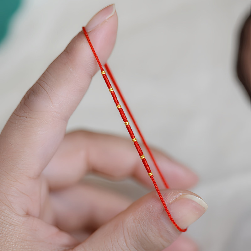足金999黄金小隔片本命年纯手工编织红绳极细手链脚绳端午五彩绳