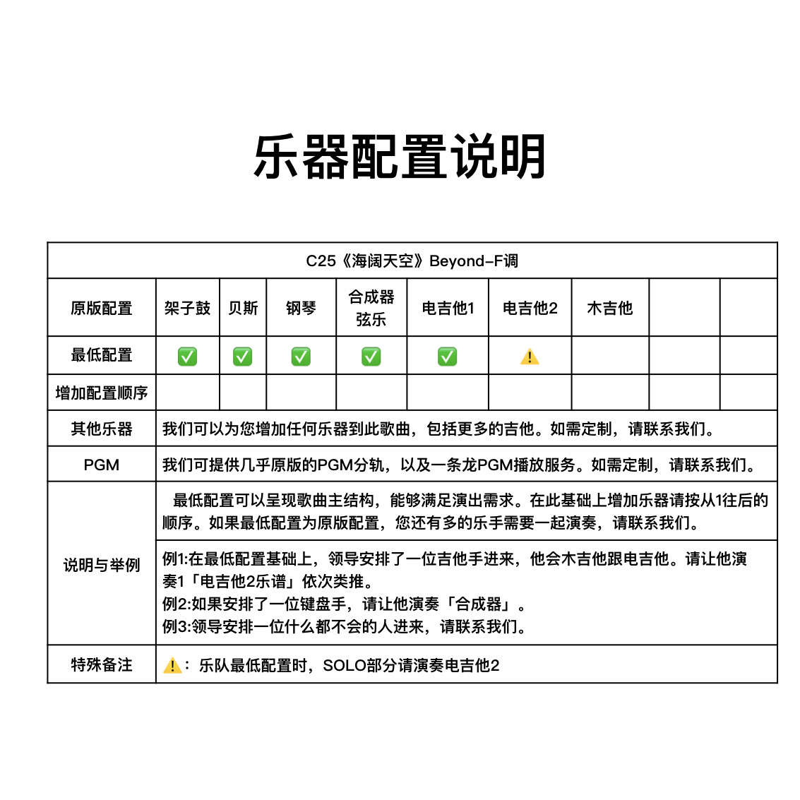 C25乐队总谱《海阔天空》Beyond 吉他鼓贝斯键盘钢琴谱PDF附音频