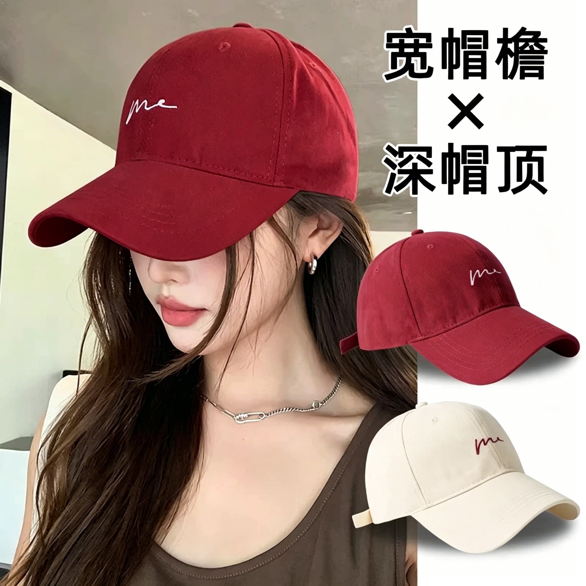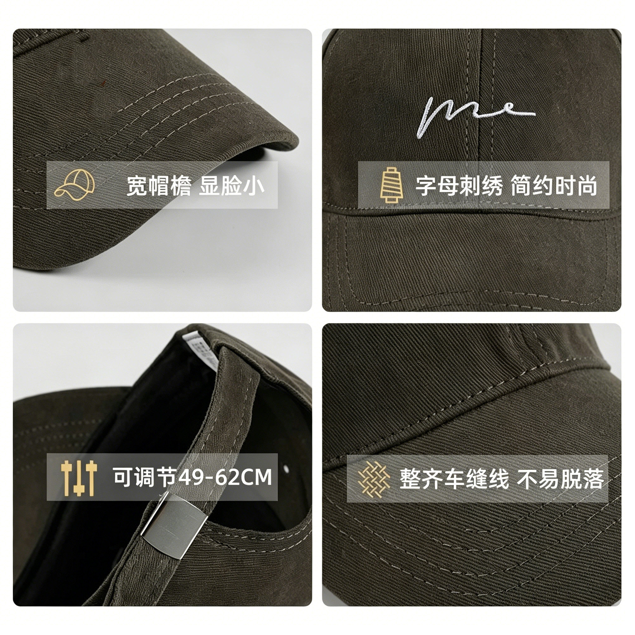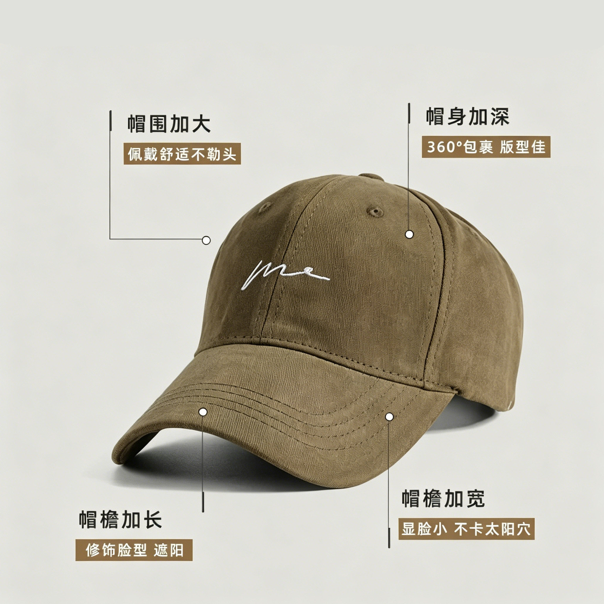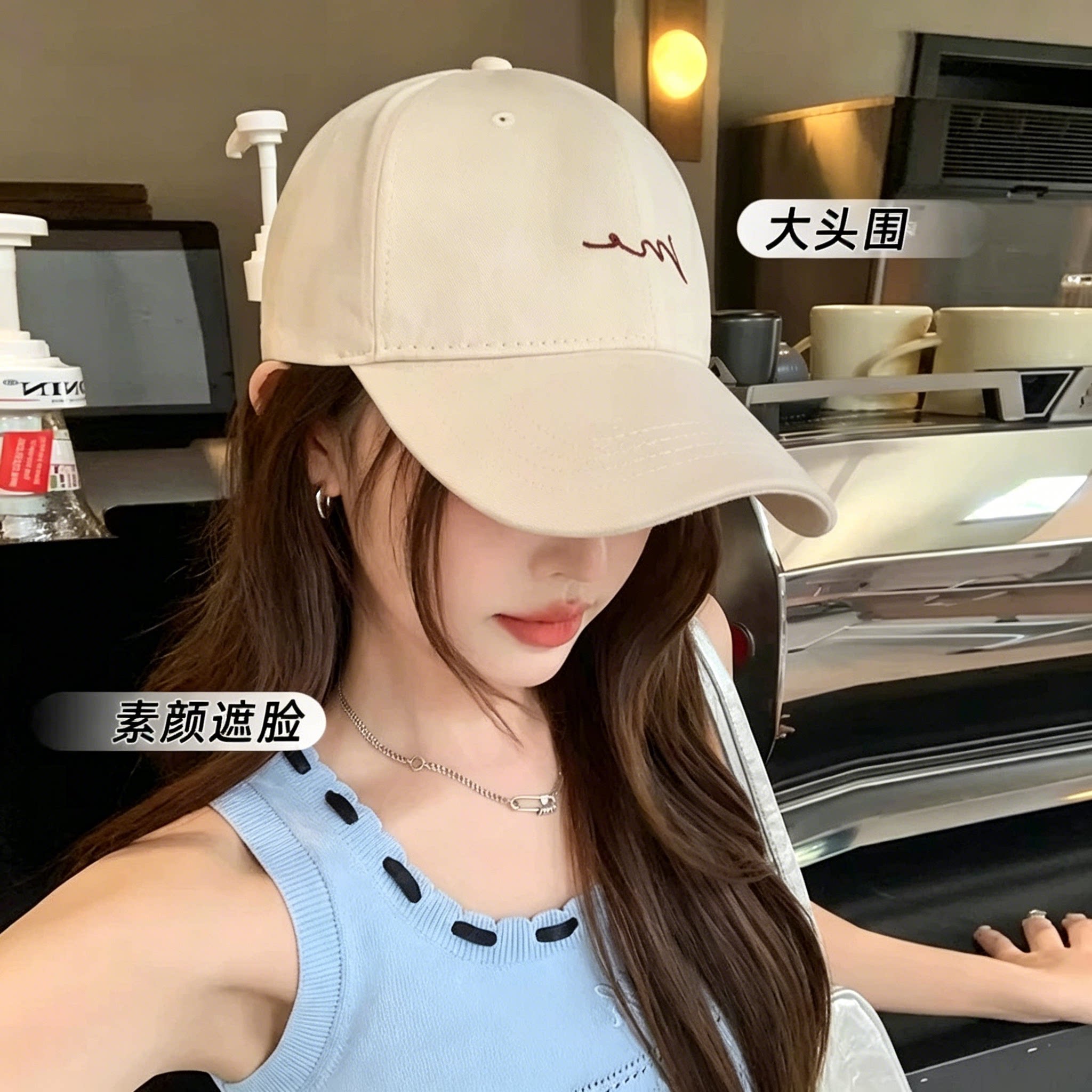 米白色大头围帽子鸭舌帽棒球帽大脸显脸小宽帽檐女加大加深