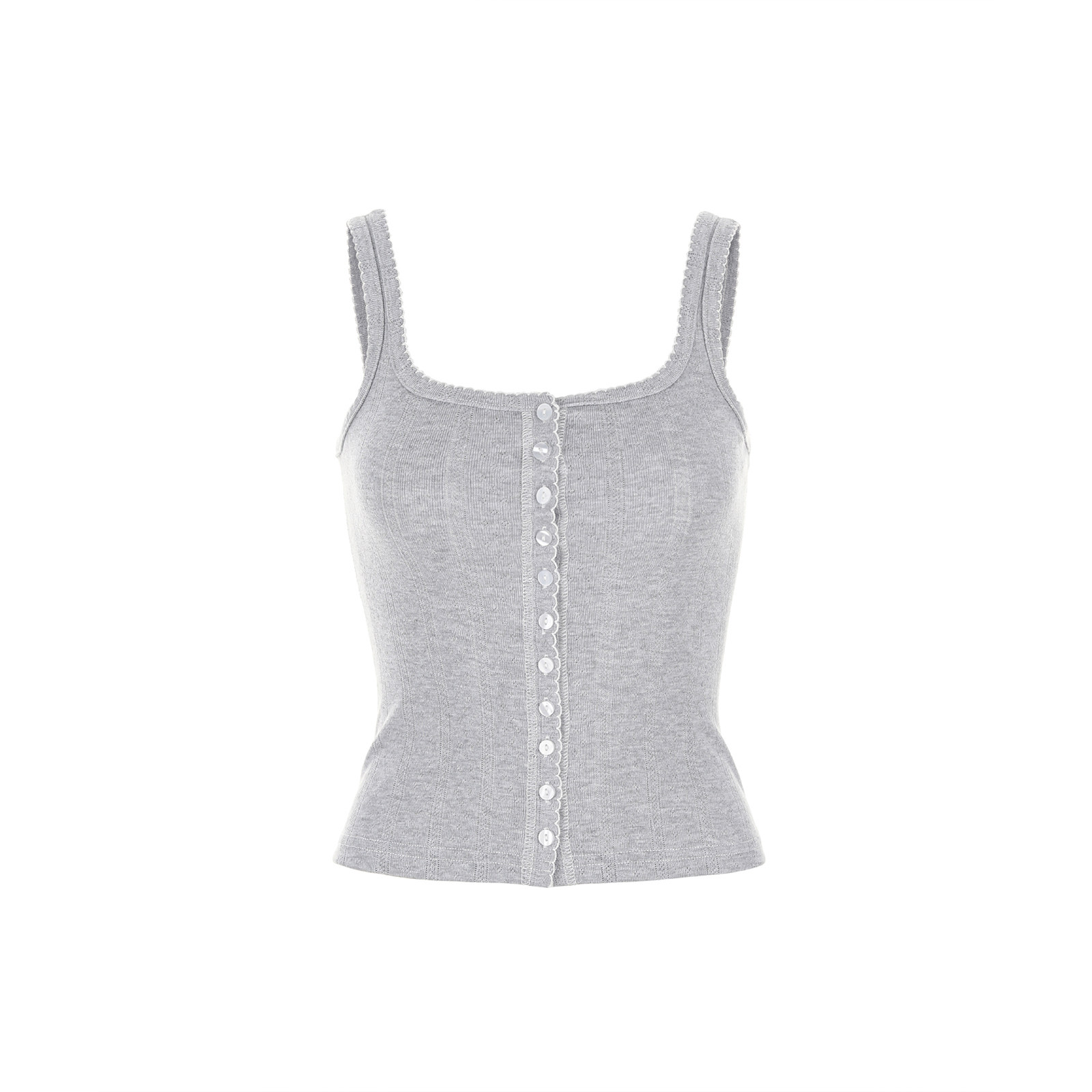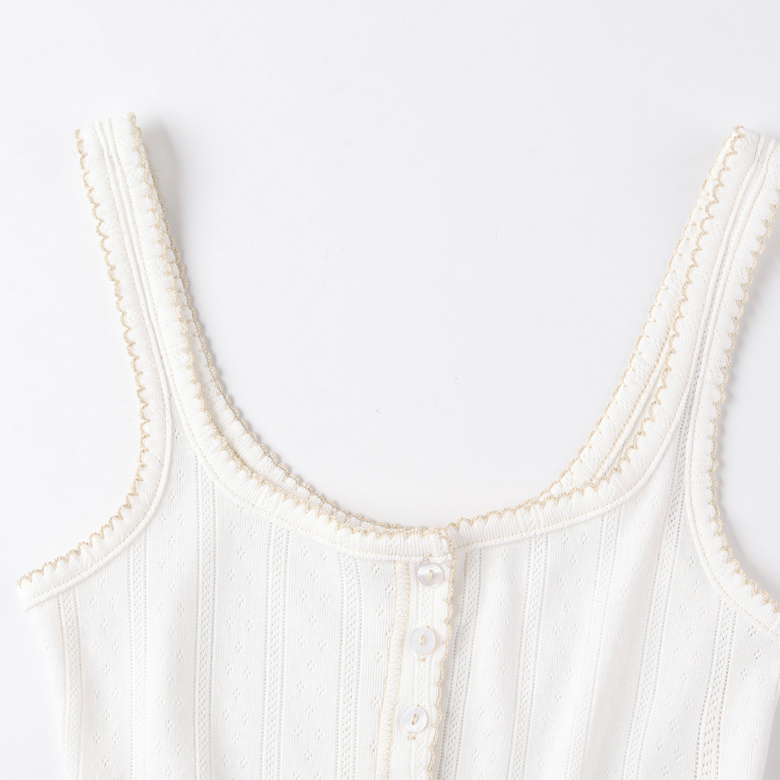 wana try法式复古花边纽扣吊带2026夏季新品韩系休闲简约背心女