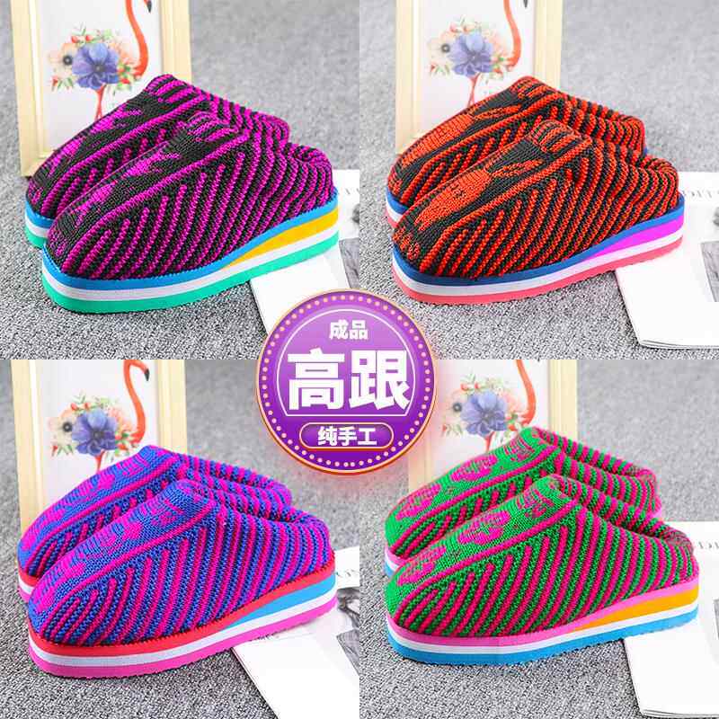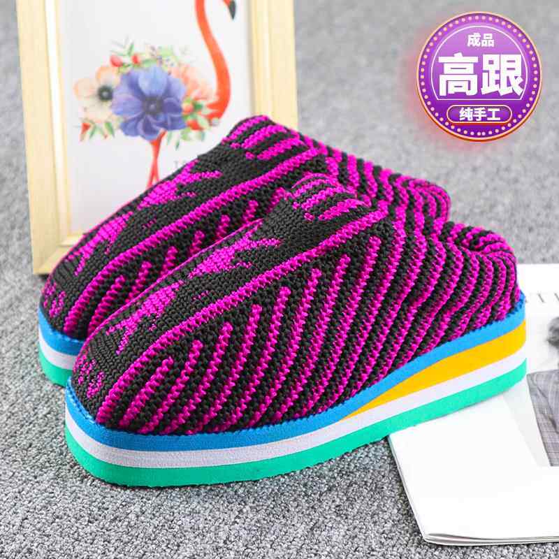 高跟女款纯手工毛线 线编织海绵保暖棉拖鞋居家冬季松糕底加厚成
