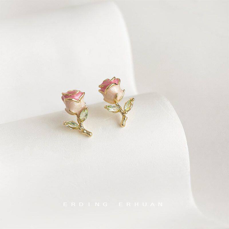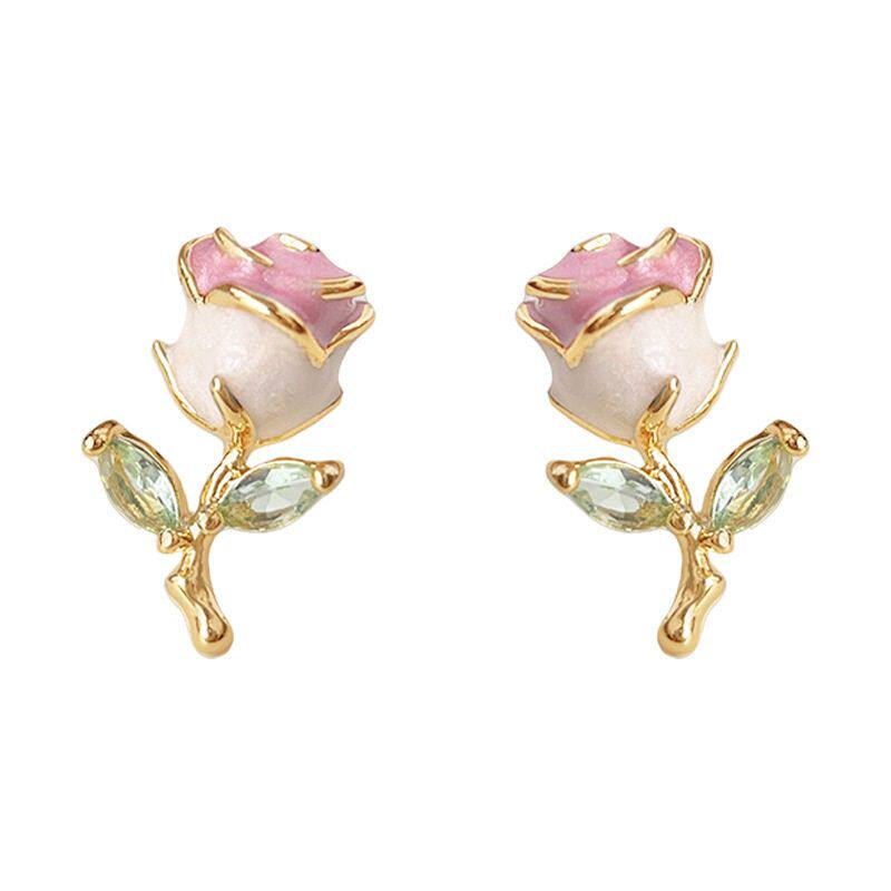 超甜玫瑰~小清新珐琅滴釉质感玫瑰花小耳钉小巧精致创意耳饰女