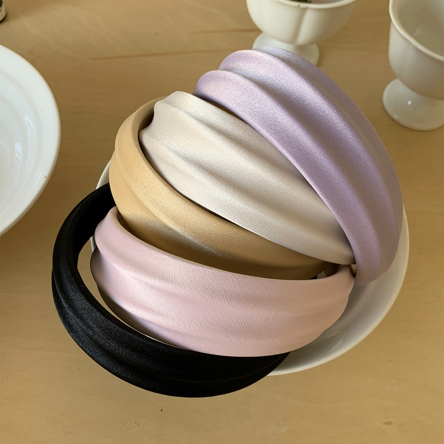 温柔鎏光~缎面凹凸纯色发箍高颅顶宽边头箍日常通勤压发发卡发饰
