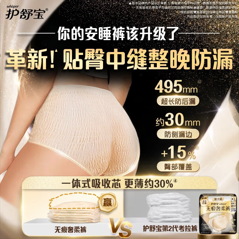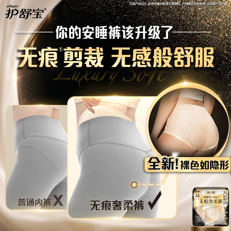 【巨薄超柔】护舒宝无痕奢柔裤安睡裤大码安心裤L透气夜用卫生巾