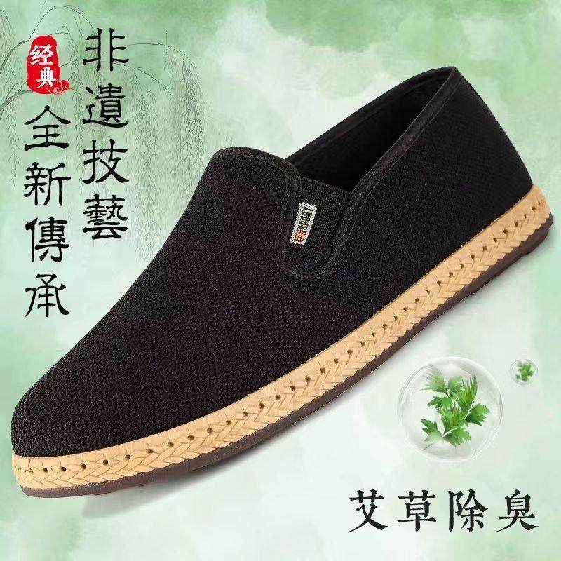 新款老北京布鞋男款透气休闲轻便耐磨一脚蹬防臭吸汗艾草布鞋男鞋