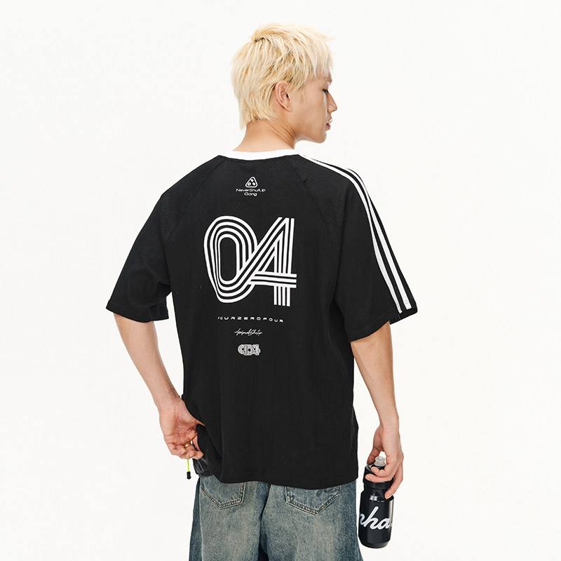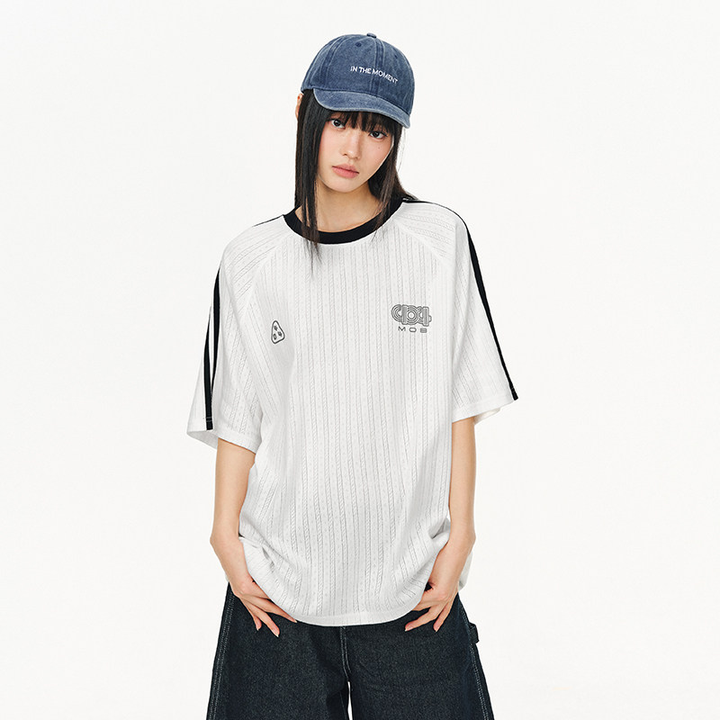 404MOB纹理运动透气球衣短袖T恤男女款2026夏撞色条纹圆领情侣t潮