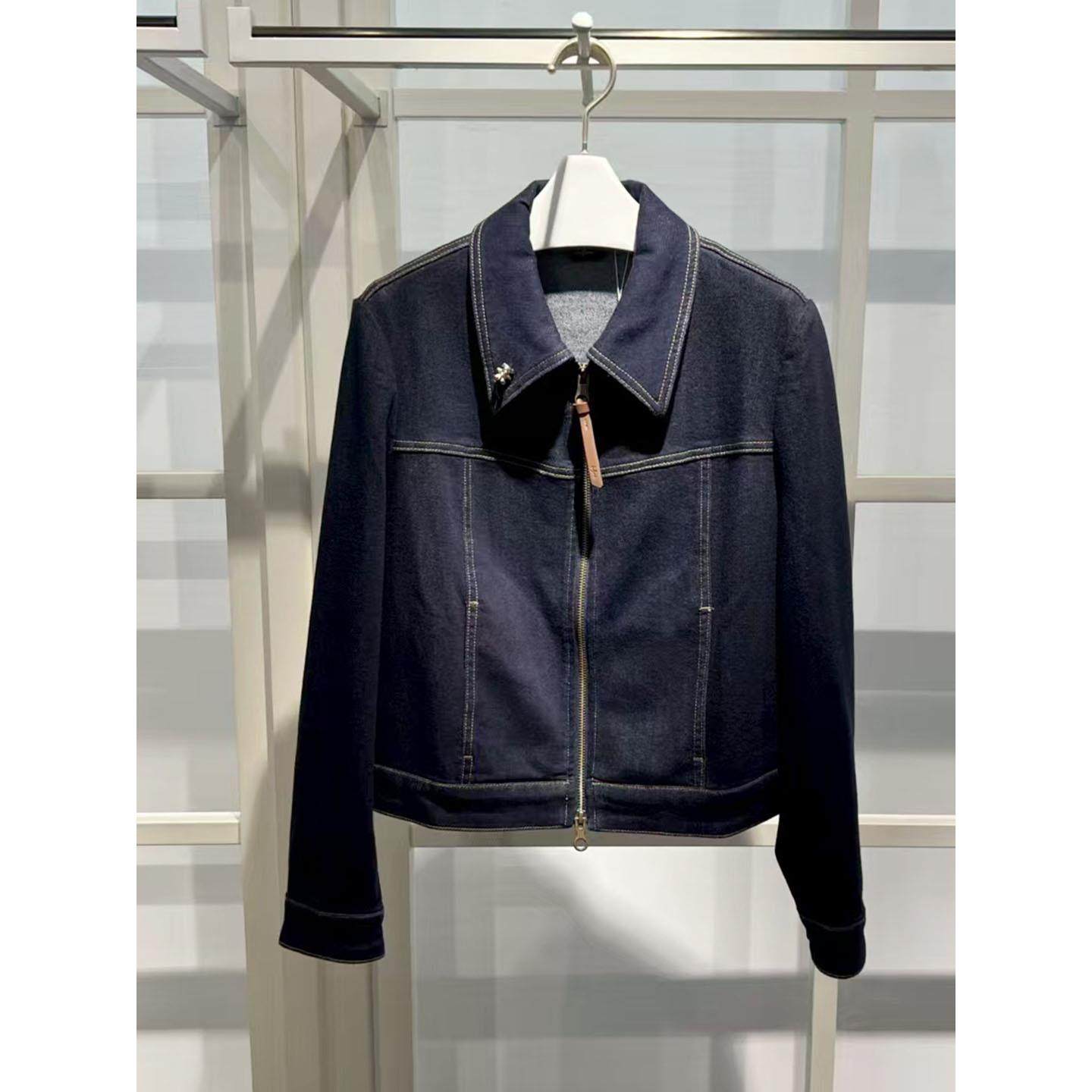 商场同款正品速发2025秋新款百搭通勤翻领藏青色牛仔外套女0951