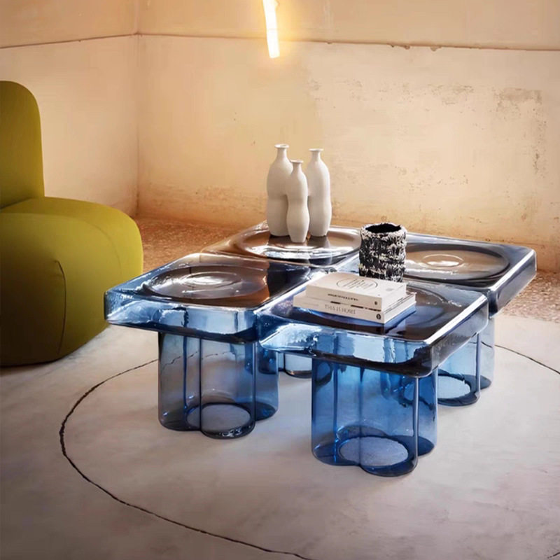 四方形轻奢高级感沙发边几玻璃客厅设计师角几沙发阳台圆形茶几