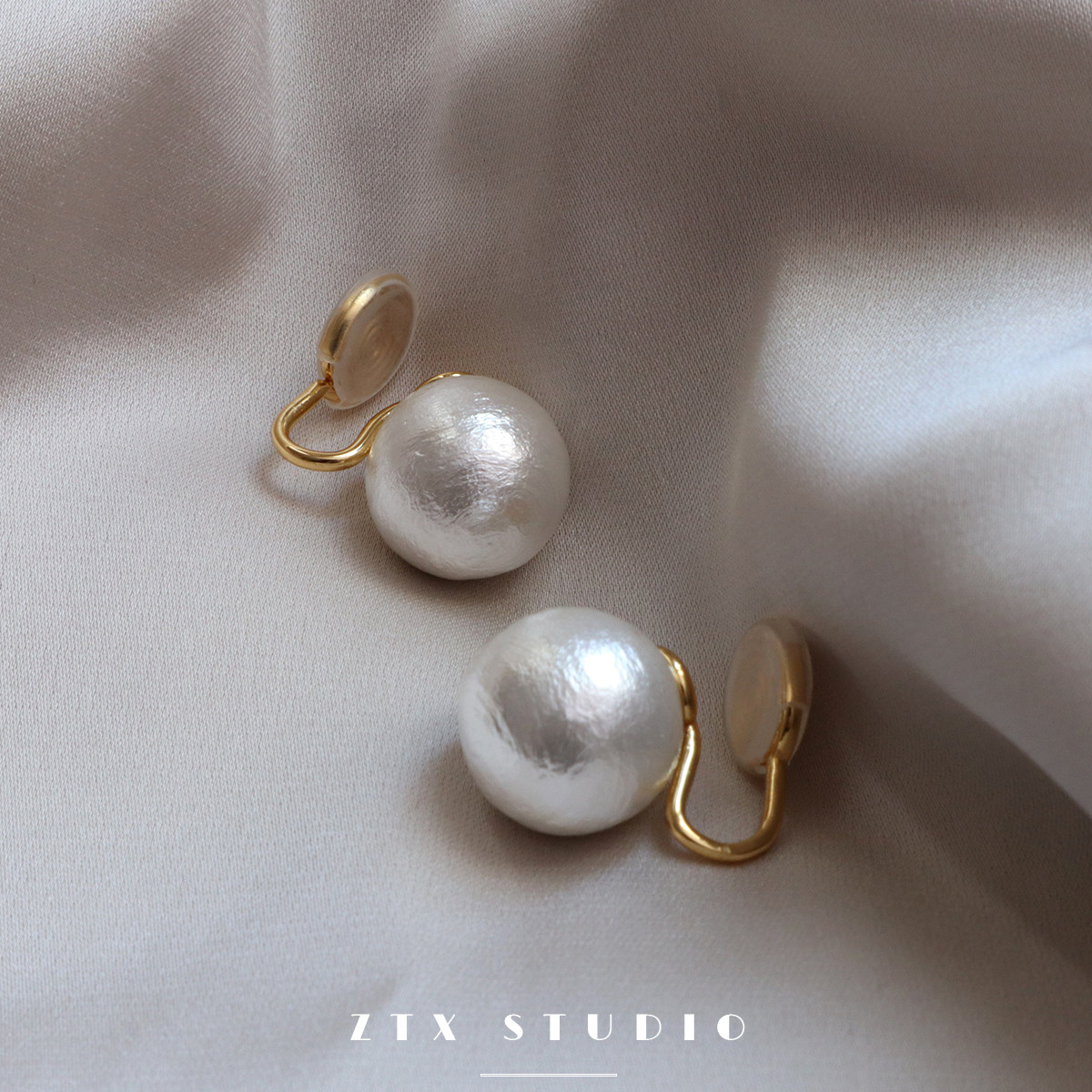 棉花珍珠蚊香盘耳夹女无耳洞耳饰无痛简约气质耳钉法式复古耳环夹
