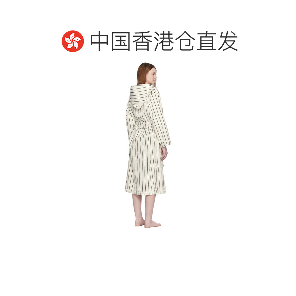 1h可退 香港直邮Tekla 女士 白色 & 绿色 Terry Hooded 浴袍 HBTH