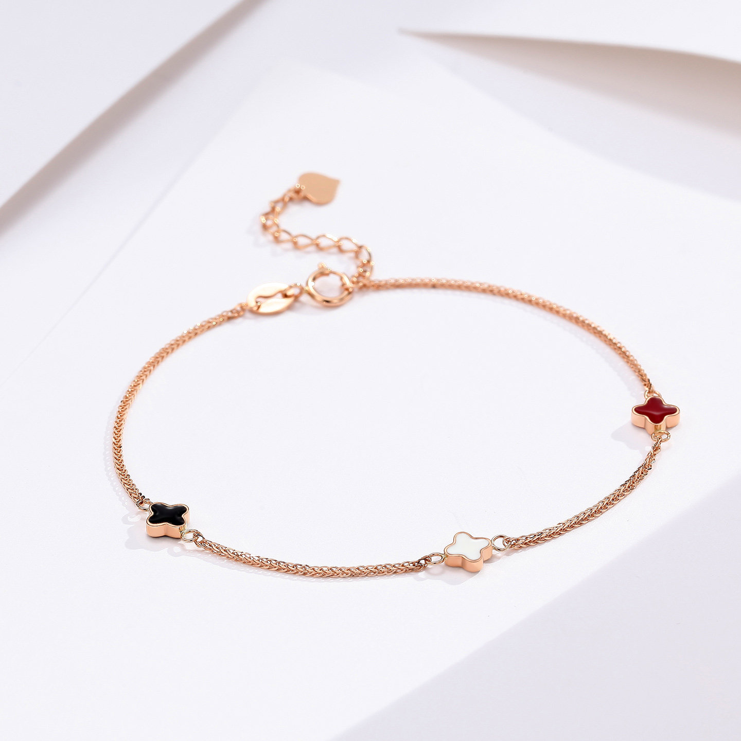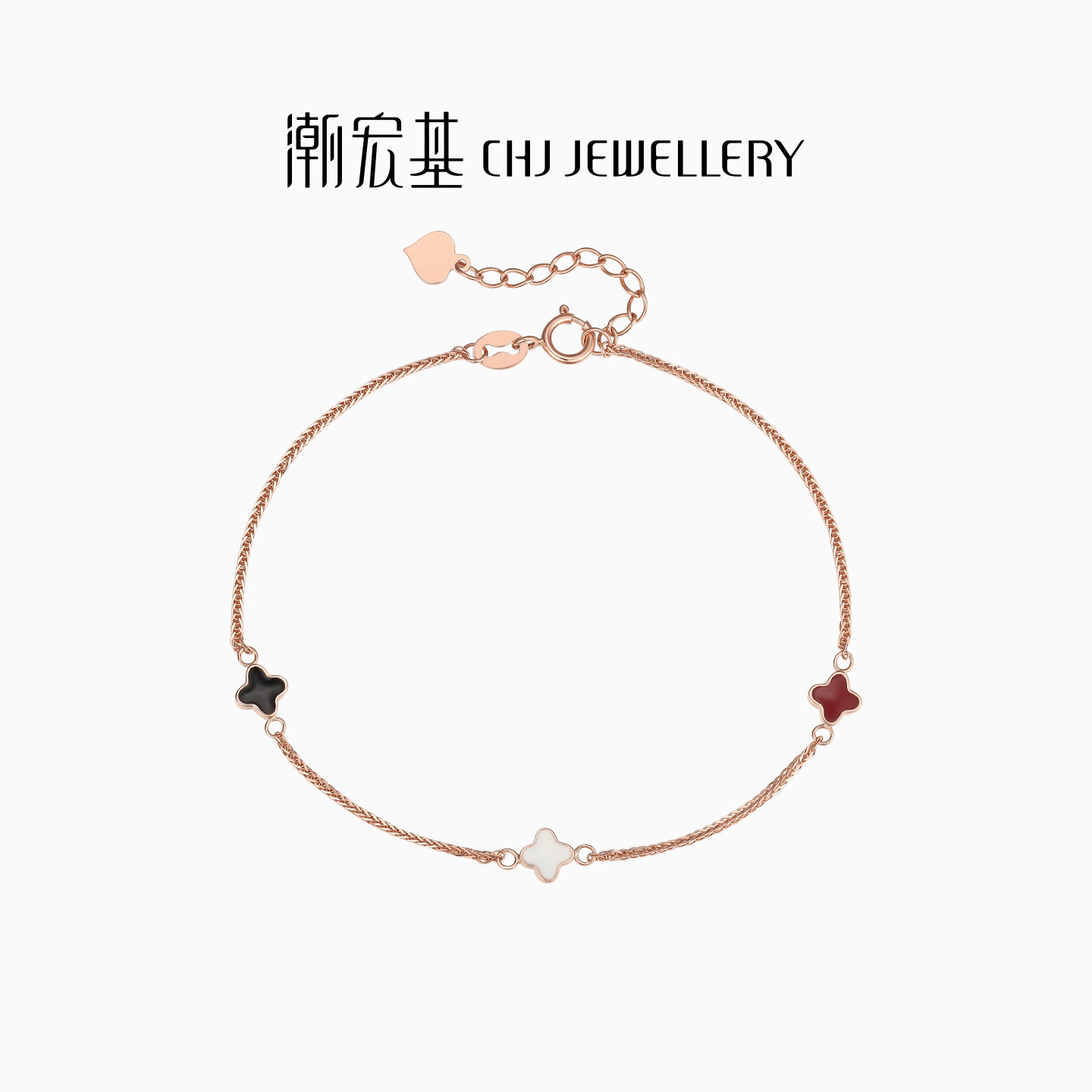 潮宏基小确幸四叶草18K金手链玫瑰彩金珐琅四叶草生日礼物