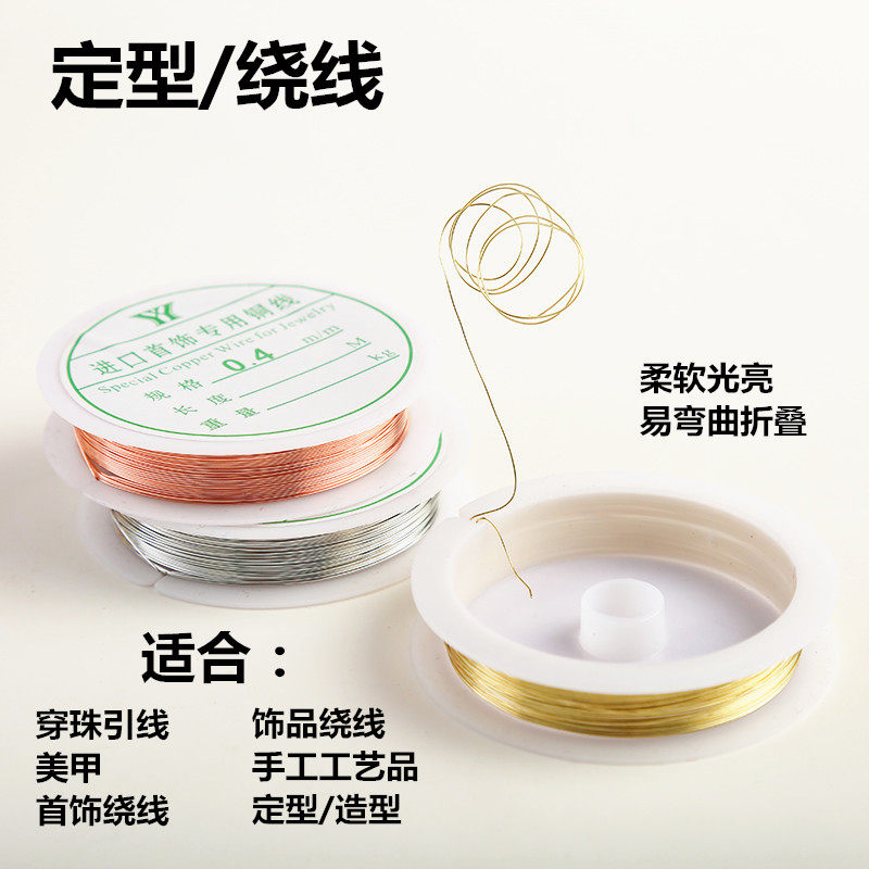 美甲铜丝线 首饰线定型线铜丝diy穿珠引线手工工艺品绕线金属铜线
