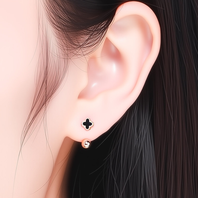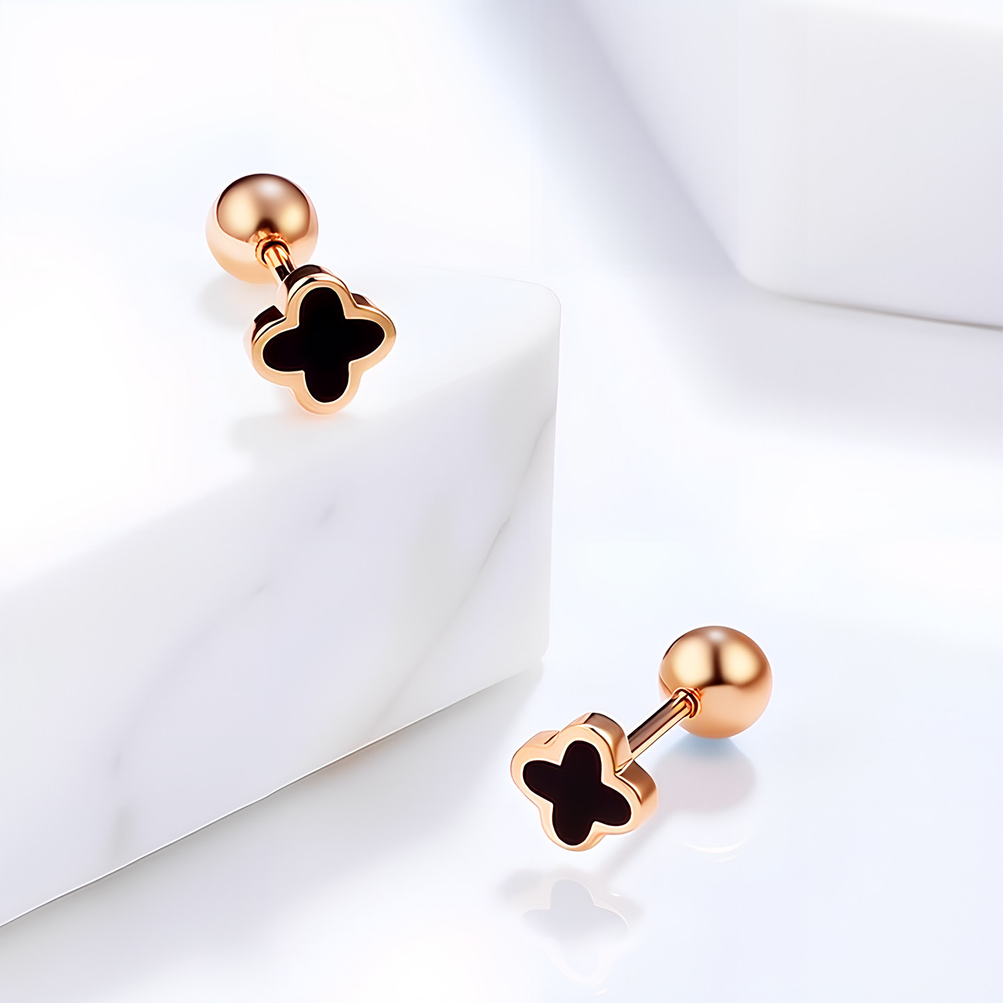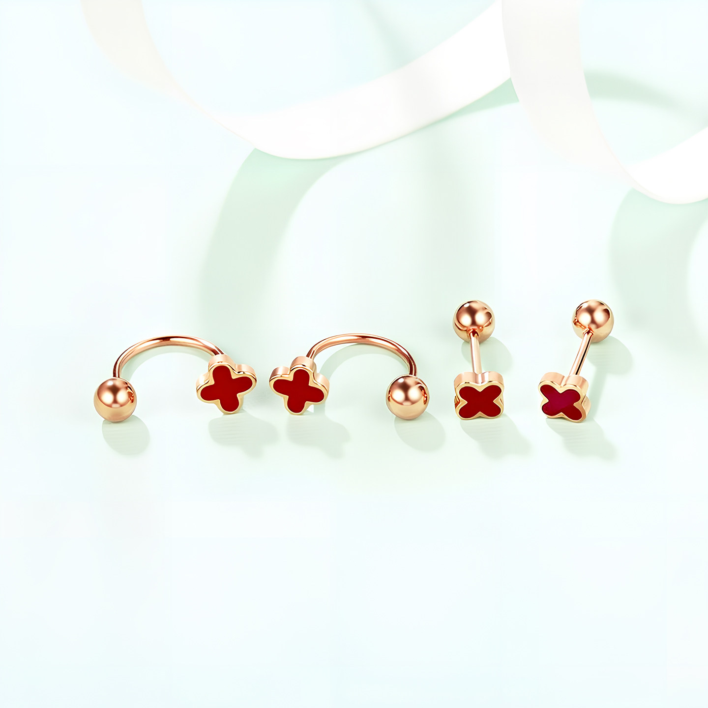 四叶草u型耳钉耳骨彩金耳环18k金螺丝耳钉拧扣圈新款耳饰2025爆款