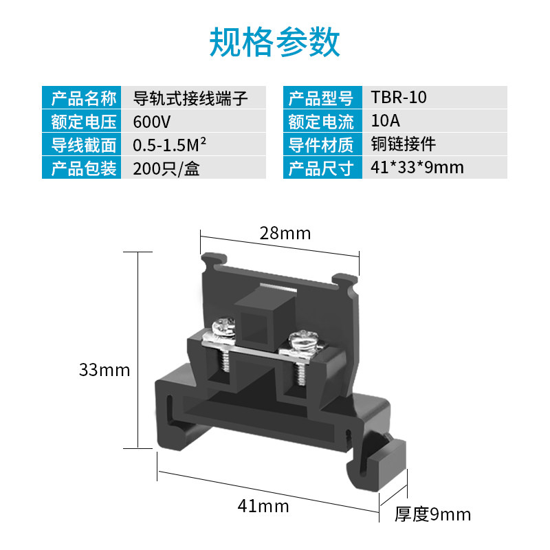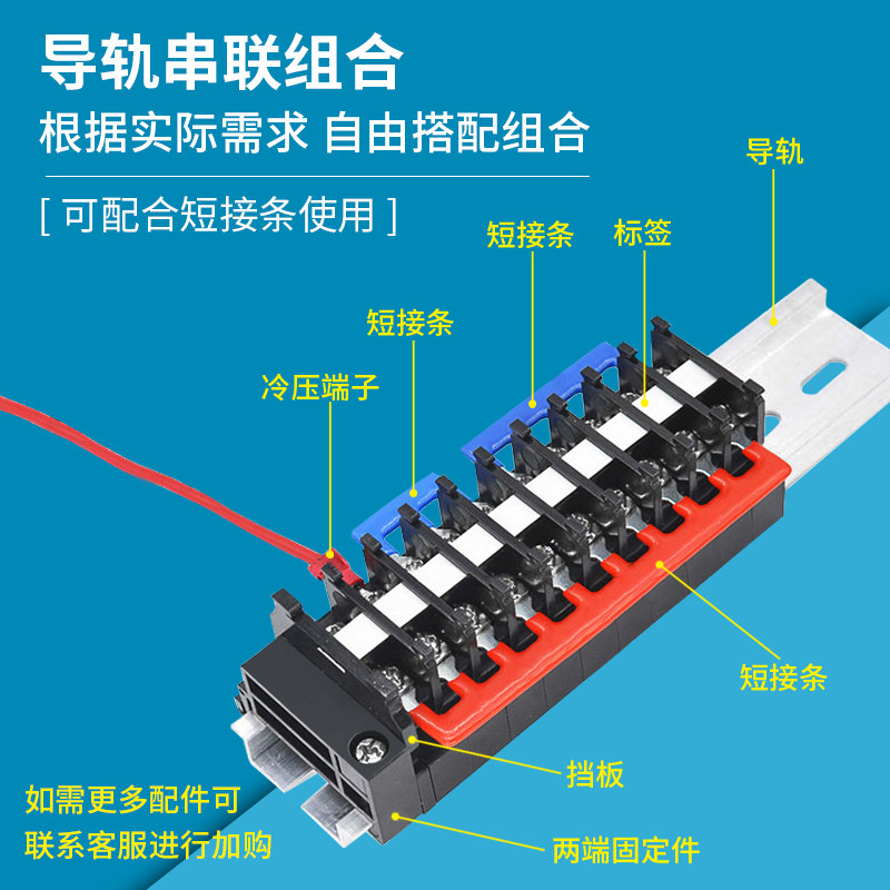 铜件TBR-10A导轨组合式接线端子排不滑丝不断脚单层电线接线端子