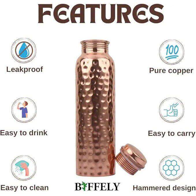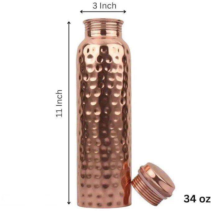 Stainless Steel Water Bottle,34oz Hammered Ayurvedic Vessel
