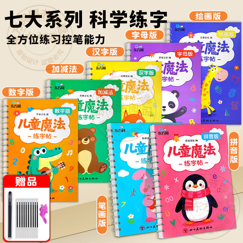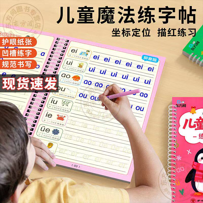 儿童魔法凹槽练字帖幼儿数字描红本学前启蒙练习贴笔画控笔训练写字贴凹槽练字帖随课写字小学生专用练字本儿童控笔训练写字凹凸