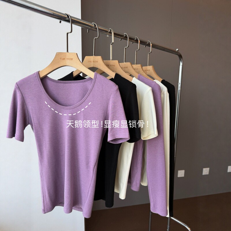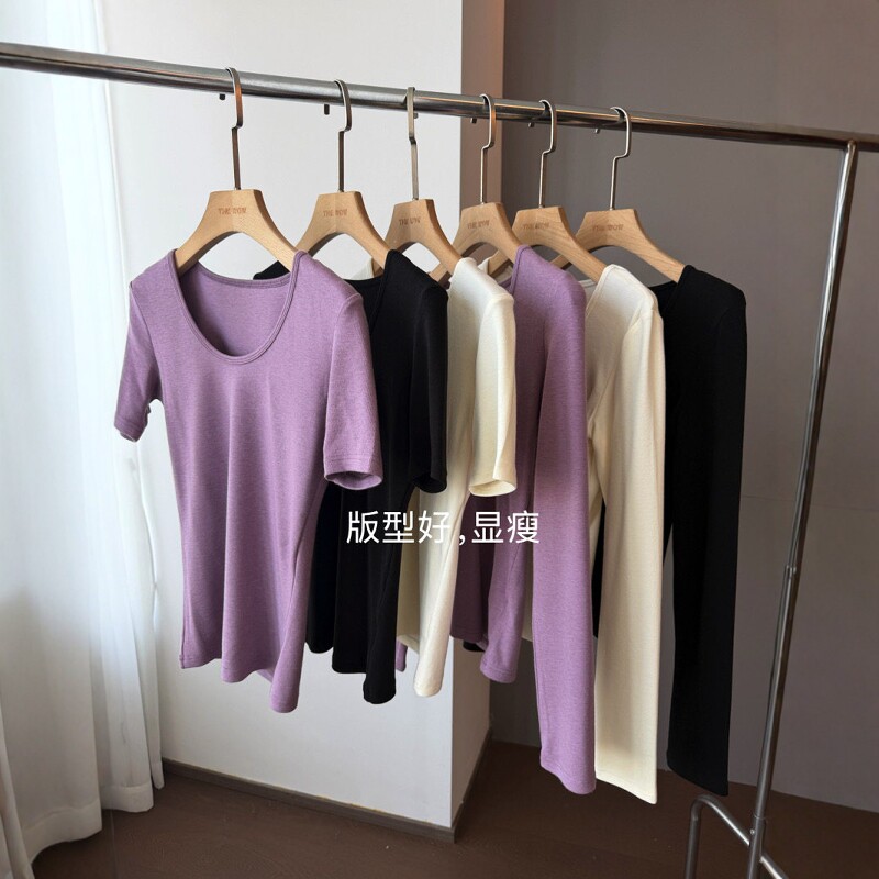 THEWOW 显瘦U领短袖长袖女款T恤软乎乎舒适高弹修身正肩2026春夏